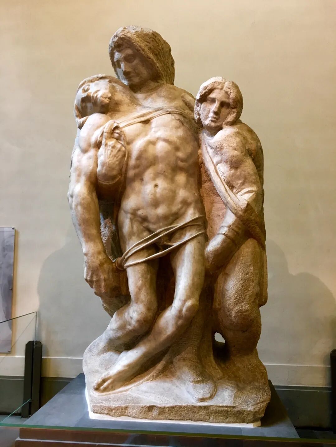 每天两分钟,赏雕塑,听艺术,大家好!今天给大家介绍由意大利文艺复兴时期的大师米开朗基罗于1555-1559年间创作的大理石雕像《帕莱斯特里纳圣母怜子》,也有人将其命名为另一件《哀悼基督》。