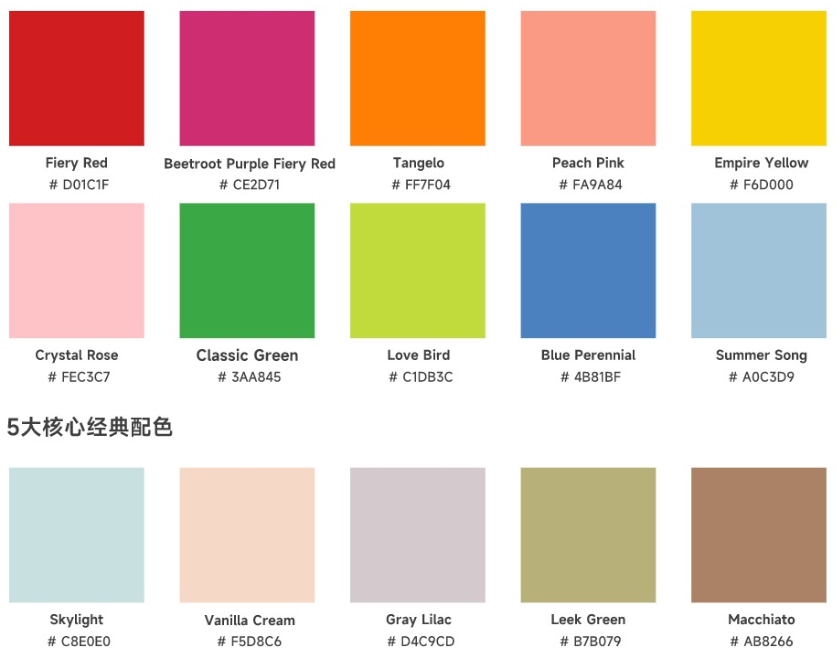 2022年9月初,潘通2023年(纽约时装周)春夏流行色趋势报告就如约而至,报告中包含10种流行色以及5种当季主打的核心经典色,且每个颜色都有一个贴切美好的名字。