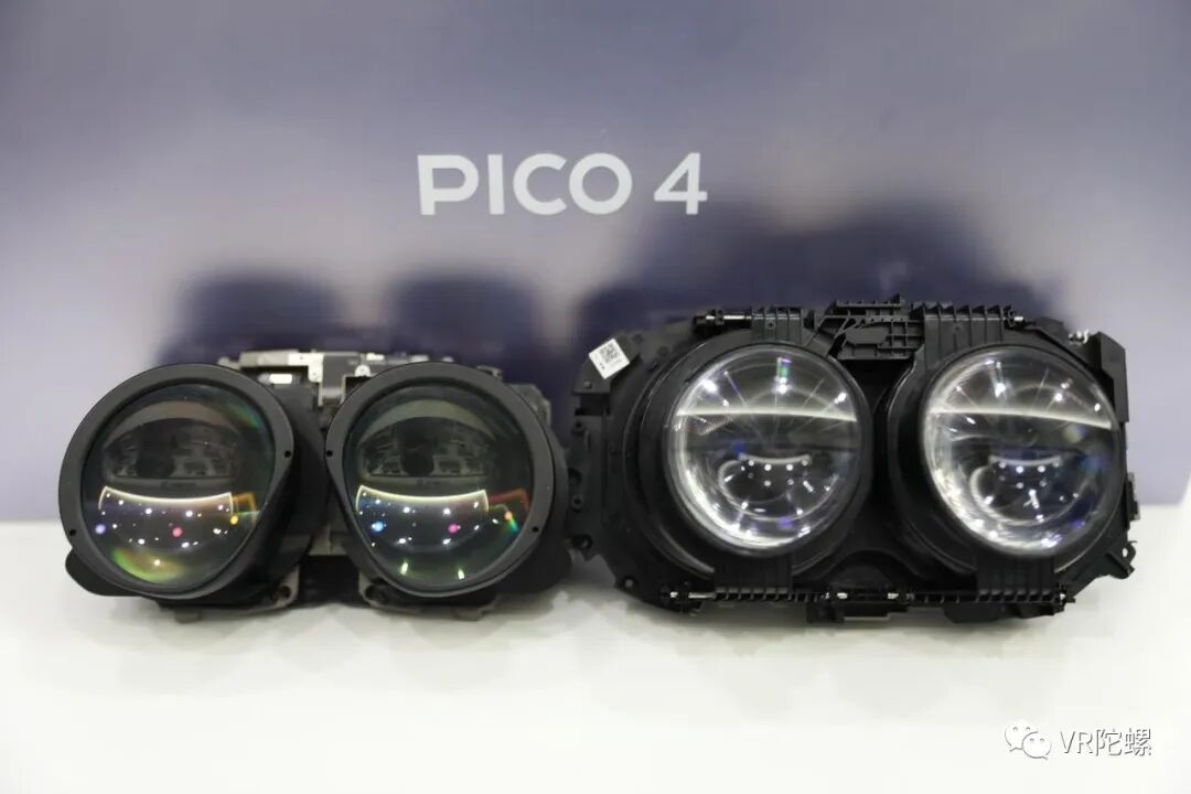 对于 PICO 4 而言,它所采用的单片式 Pancake 光学方案同样遇到了膜材褶皱等问题的挑战。PICO 对 VR陀螺提到:“基于传统的单片式 Pancake 折叠光路设计 ,PICO 4 需要在直径为 40 毫米到 50 毫米的光学镜片上,再均匀地贴上一层膜,这对于膜材的平整度,甚至是灰尘都有非常严苛的要求。膜材的任何一点点瑕疵,都会对整个光学系统造成很大的影响。”