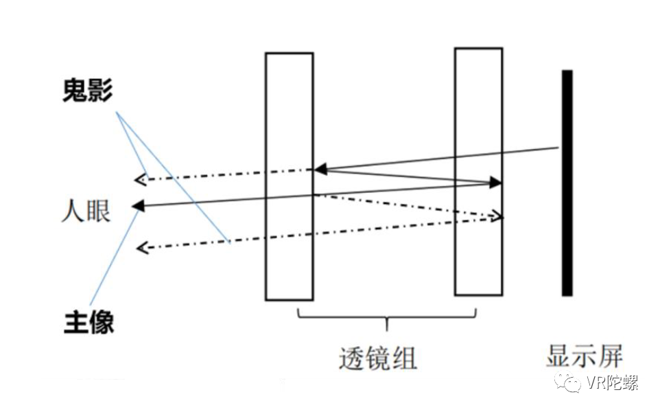 由于 Pancake 折叠光路的光学性质,导致光源在折返过程中,存在偏振漏光等形成的杂散光,从而影响到最终入眼呈像效果,这个现象我们叫做”鬼影“。
