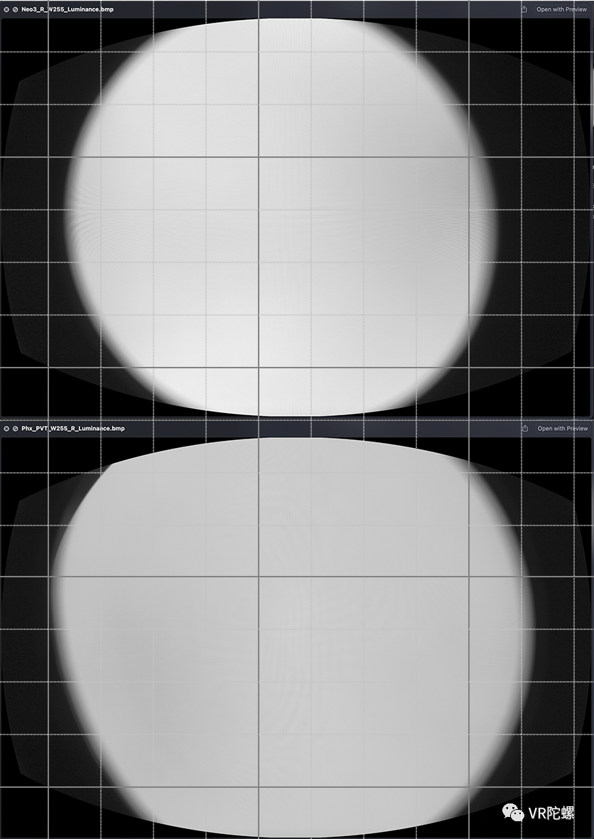 另外,从入眼亮度来看,相对于上一代采用一块 5.5 英寸屏+菲涅尔透镜的 PICO Neo3,采用2.56 英寸+单片式 Pancake 折叠光路的 PICO 4 入眼亮度更均匀,可以更好还原画面图像色彩。从某种角度上来说,入眼亮度的均匀分布,还能在视力保护方面有一定功效。