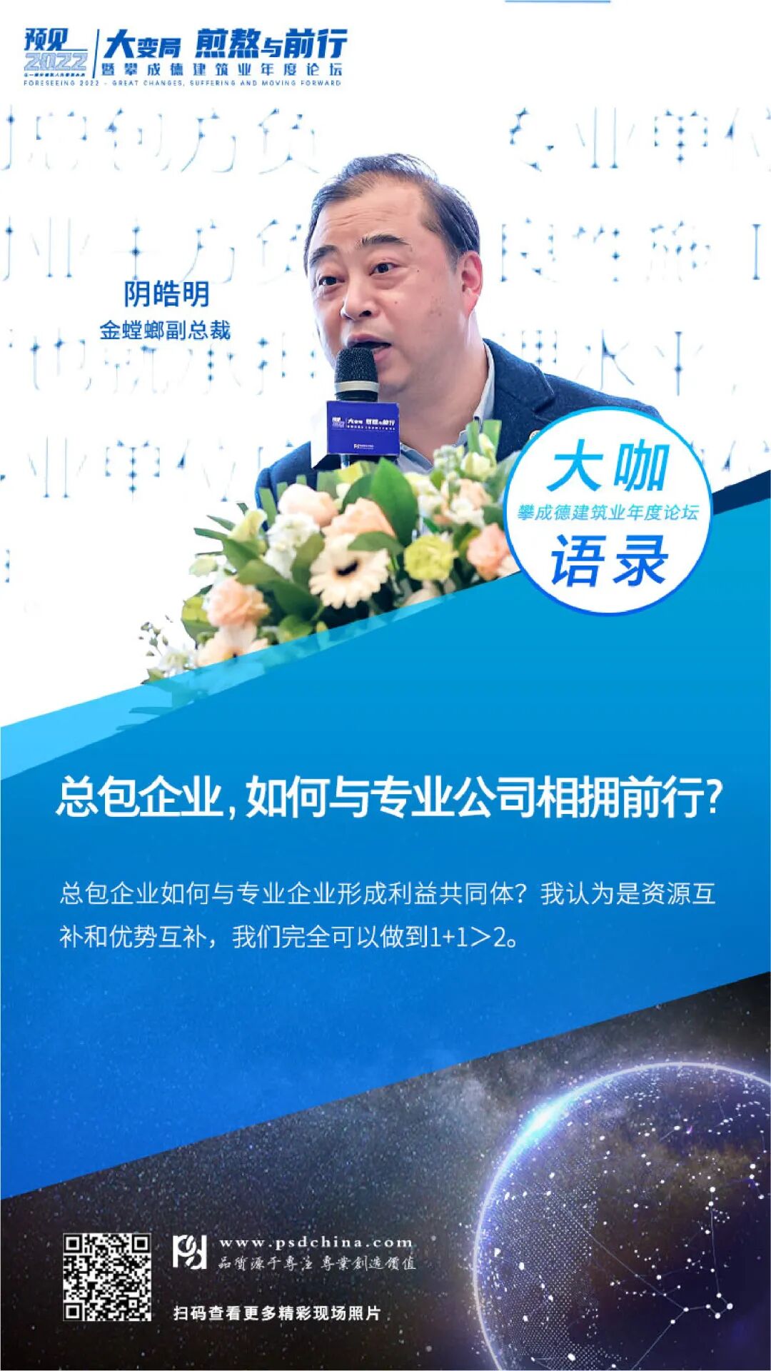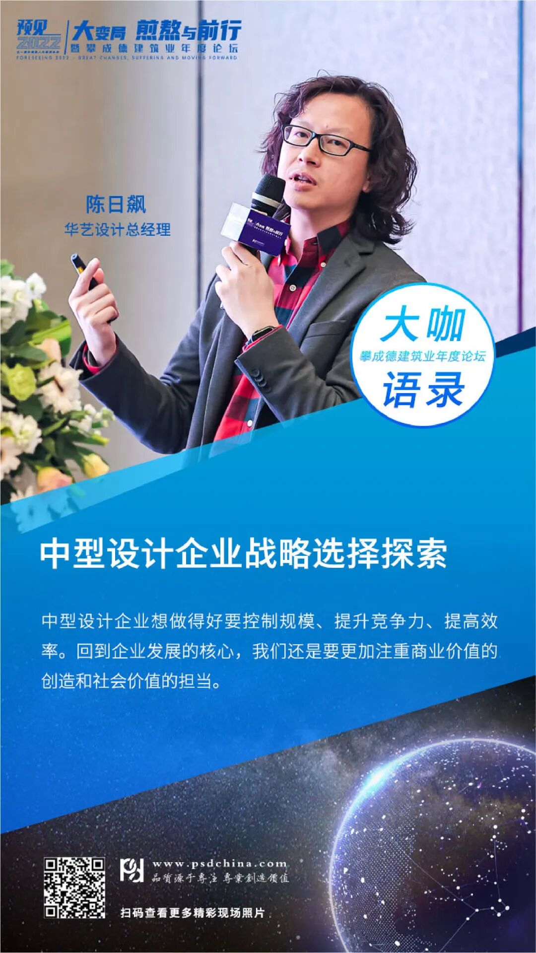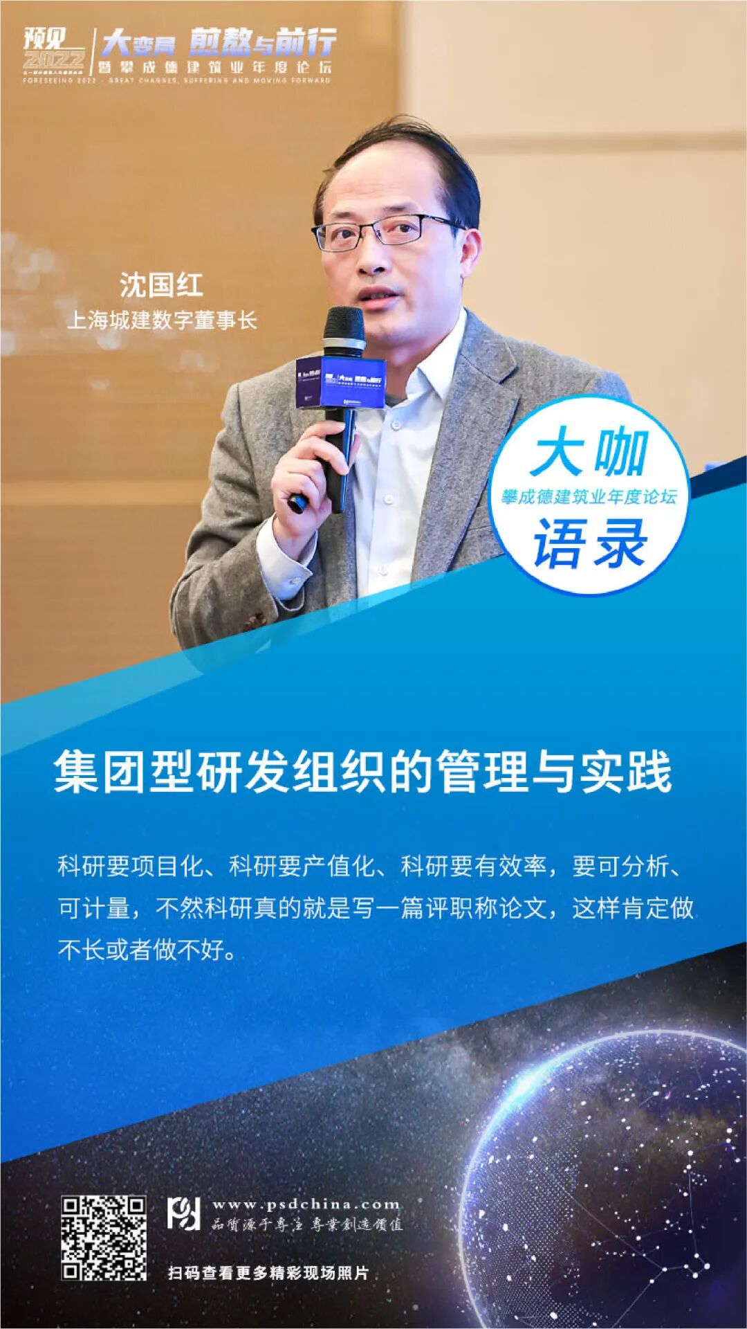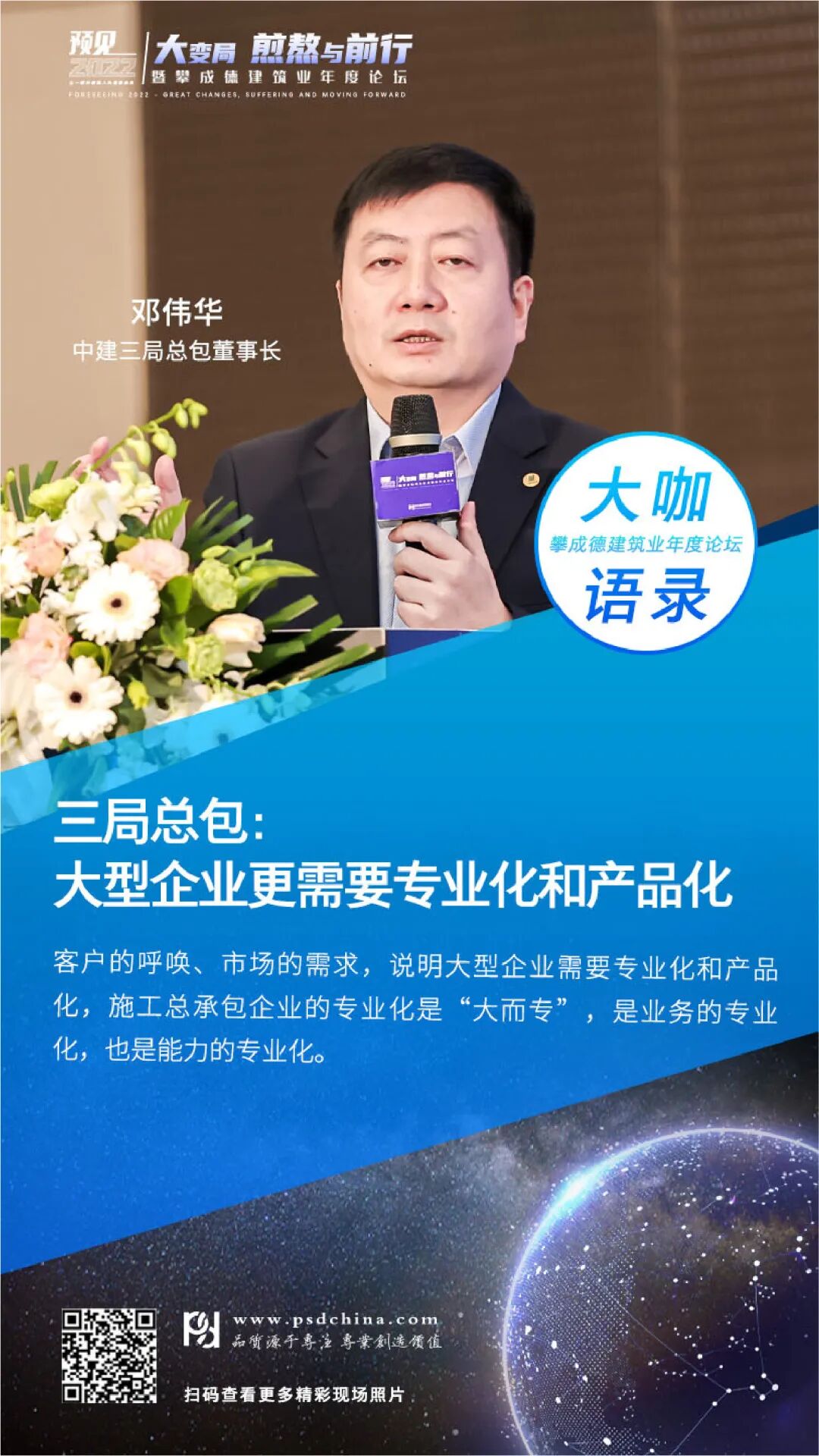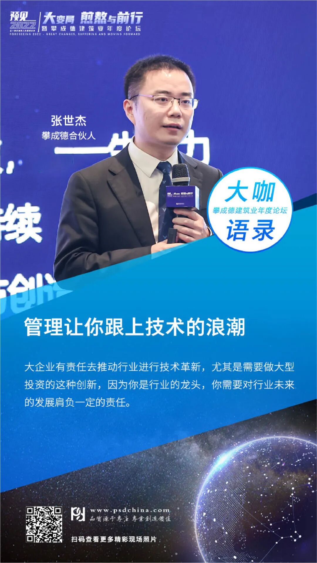 选择这个主题,攀成德在内部做了很多探讨,我们以为工程行业到了真正的价值创造时代,需要价值链环节的融合、设计院与施工企业的融合,而这些融合也要求企业家的思维、企业的管理发生蜕变。基于这样的总体思考,我们策划了2个沙龙:勘察设计-从井田法则到丛林法则;建筑施工-从自由竞争到垄断竞争;2个闭门会议:设计场和施工场;1个主论坛:建筑业,大国博弈时代的中流砥柱;5个分论坛,包括3个热点主题论坛(模式、数字、创新)和施工、设计2个专业论坛。这也是我们首次尝试施工和设计同步策划论坛。这一次我们邀请到工程行业内31位,包括施设、刘源、鲁贵卿、王传霖、杨卫东、薄曦、时雷鸣、张宝岭、蒋齐等企业高管、专家学者进行分享。