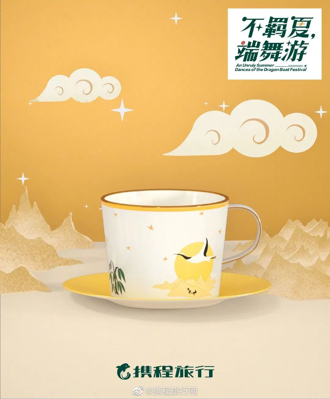 携程集团端午礼盒将视角定格在不同目的地的节庆文化,提取四个不同地方美景的地貌特征和历史典故为主视觉,通过这些吉祥元素给人们送上祝愿,实现“端舞游”。
