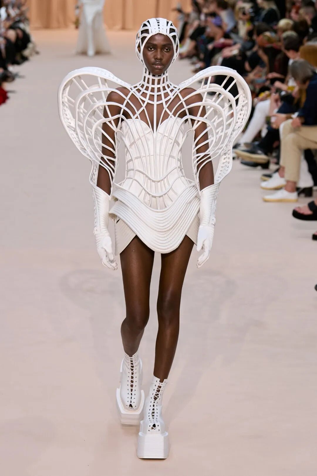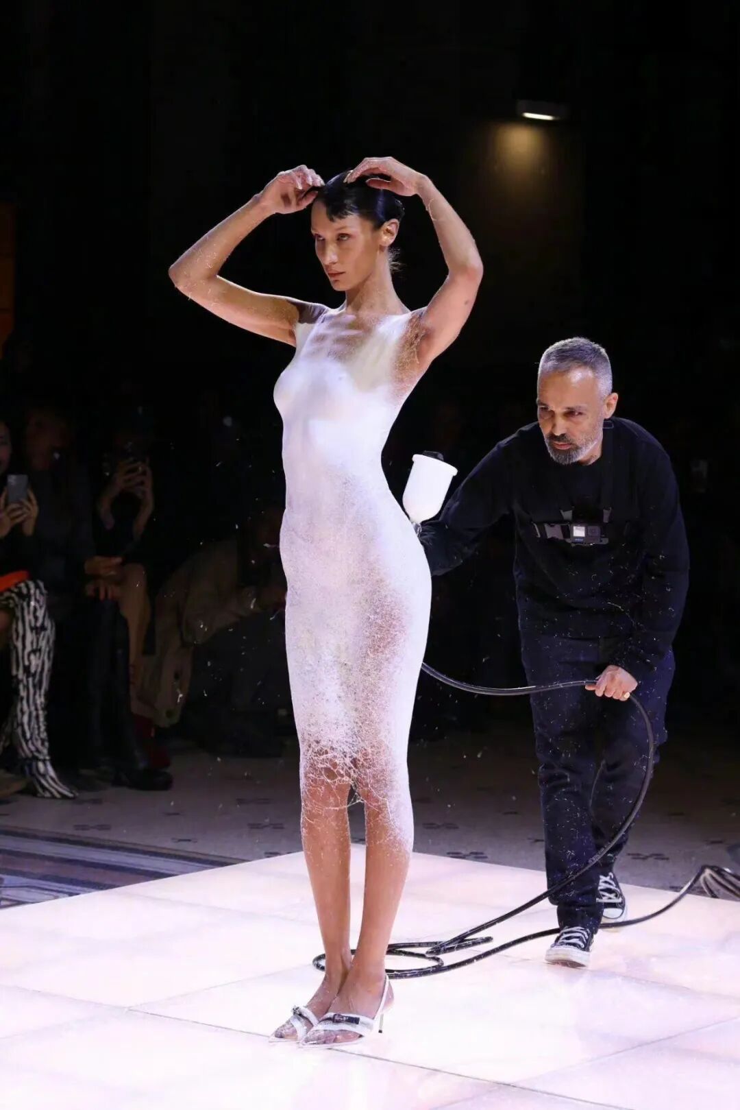 Coperni 2023春夏系列发布秀上,Bella Hadid 身着现场利用高科技材料喷涂多层后打造的流线条性感礼服,更是引起了时尚圈的极大关注。
