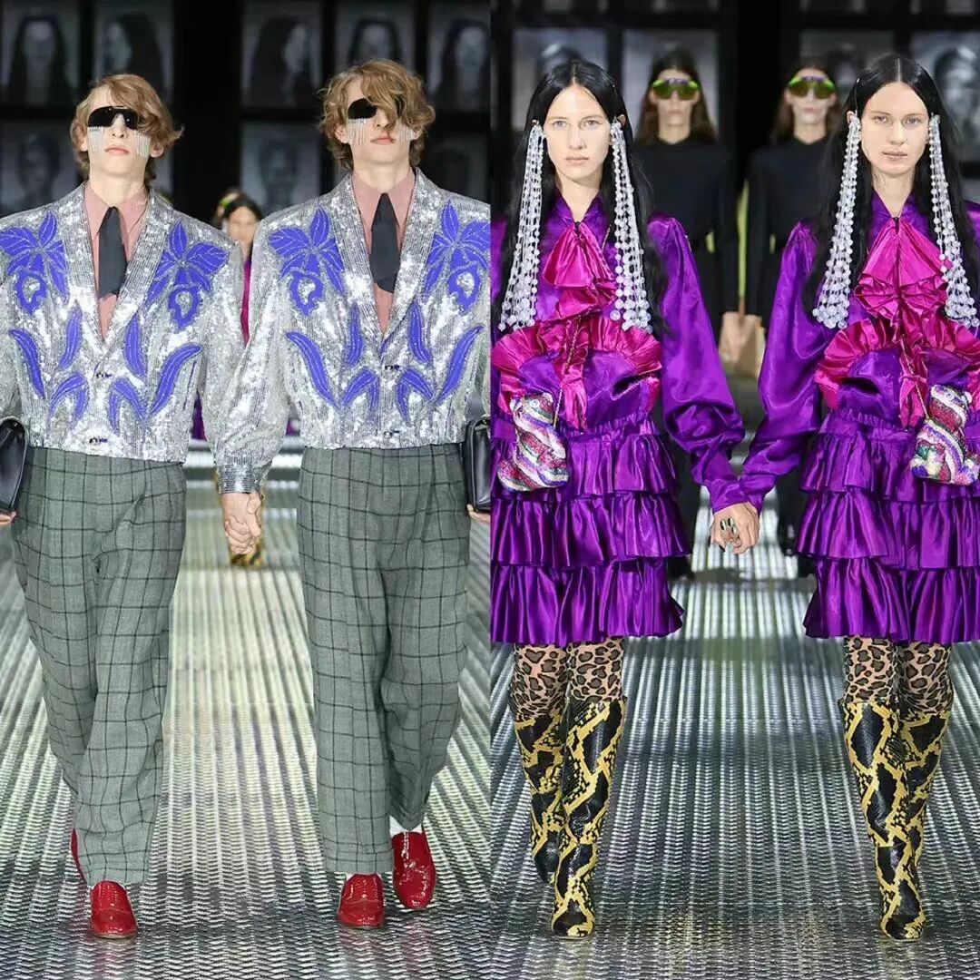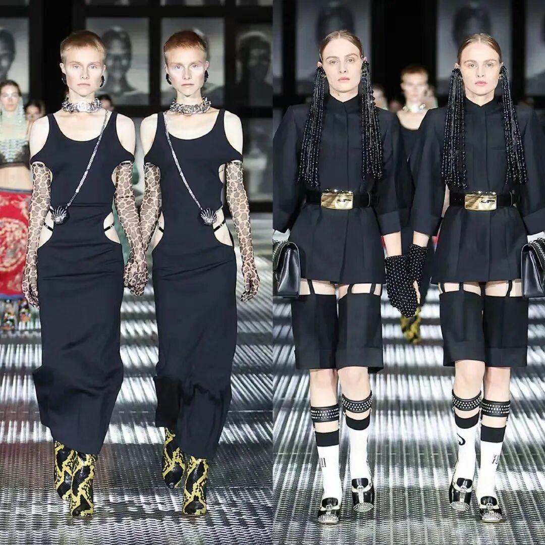 GUCCI2023SS米兰大秀,Alessandro Michele选择 68 对双胞胎模特走秀,用标志性的复古和繁复美学,结合华丽的印花、亮片等设计,诠释了品牌独有的叙事美学理念,呈现了神秘酷炫的视觉效果,两个月后Alessandro Michele宣布离任令人惊愕,如今再来看这场大秀,回味无穷。