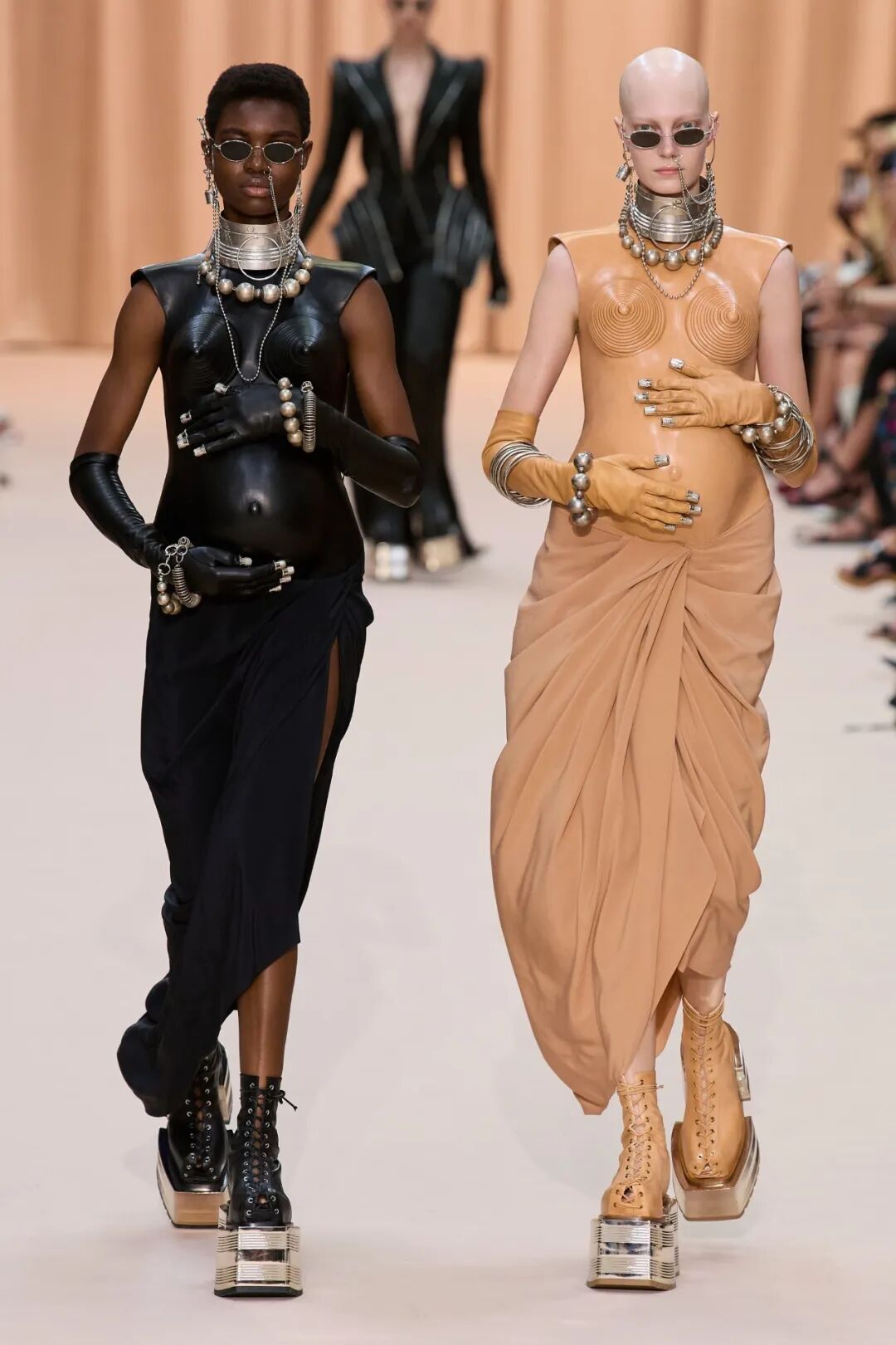 Jean Paul Gaultier 2022 秋冬高级定制系列邀请客座设计师Olivier Rousteing ,透过其大胆创新的设计色彩和锐利剪裁,向品牌经典造型致敬。
