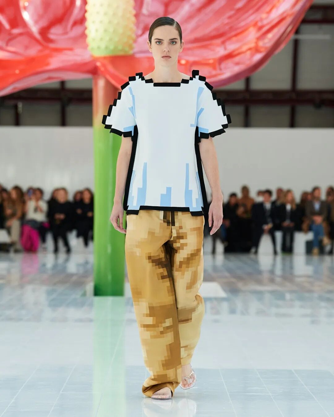 LOEWE2023SS,红掌裙、二维像素衫,化平凡为神奇。而品牌创意总监Jonathan Anderson 与艺术家 Paula Ulargui Escalona 携手打造的2023男装春夏系列更是脑洞大开,让鞋子衣服长满绿草,将自然与现代科技结合在一起,打造充满活力气息的服饰。