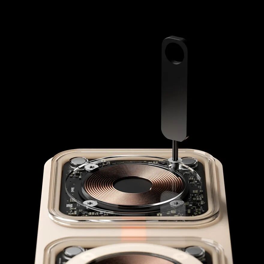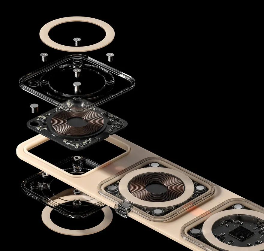 研究发现,有 11,000 吨电子垃圾是由废弃和未使用的充电器造成的,这款可折叠无线充电器融合了极简主义和透明性,专为拆卸而设计,因此可以拆开产品进行升级或维护。不像大多数充电器通常由夹在胶水层之间的许多不同材料构成,使得它们几乎不可能修理、再利用或回收。