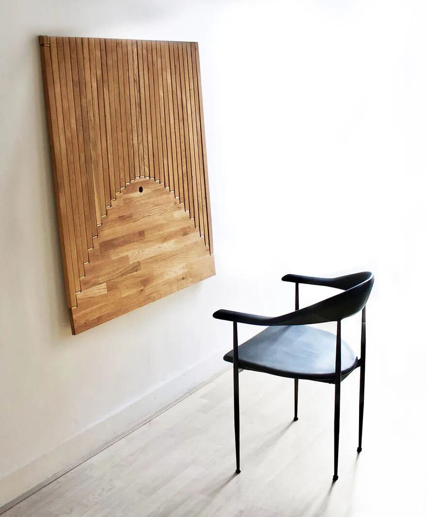 从一件艺术品转变为一张桌子,Flow Wall Desk 或许能够满足一件家具的所有要求。当“存储”并折叠起来时,它看起来就像是挂在墙上的一件艺术品,其极简主义的几何形状。