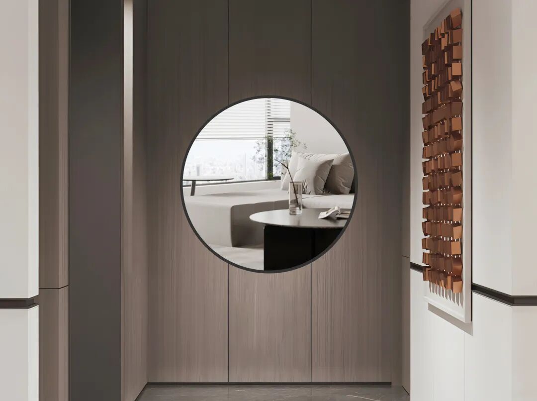 是由高分子纳米镜面薄膜做成。从视觉上很难分辨,外观效果和镜子一样平整没有差别。相比较镜子其厚度只有0.04mm,不会有碎裂的风险,重量轻,同样面积只有镜子15-20%的重量。