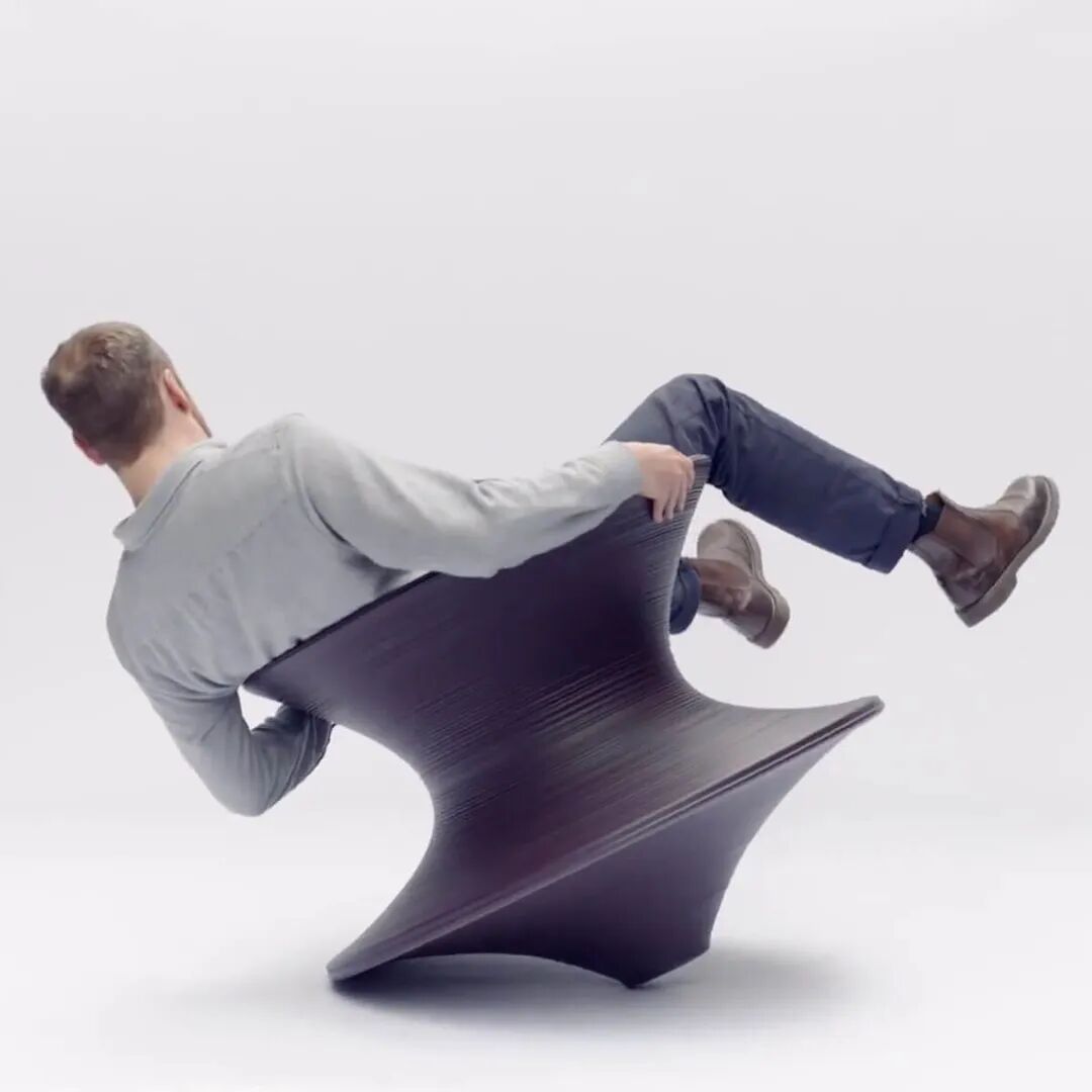 由建筑界鬼才托马斯·海泽维克设计的旋转椅可以被放在室内,室外或是办公室,坐过这把椅子的人有人形容它很有趣,有人觉得很刺激,有人则因为担心整个人翻过去而惧怕它。海泽维克的旋转椅带给使用者的感受是多种多样的,设计师声称在设计这把椅子之初并没有什么明确的目的,他和团队在经历了一系列无疾而终的尝试之后,最终得到了这样一把椅子,而这种漫无目的的探索和意料之外的惊喜就是设计这把椅子最大的乐趣。
