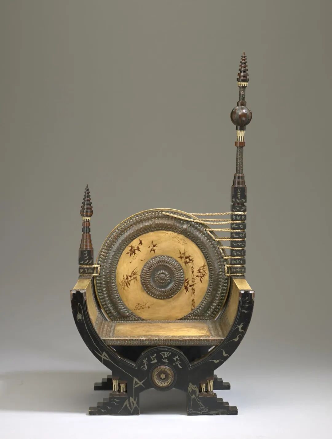 带着原始部落般神秘且霸气的王座椅由意大利设计师卡洛·布加迪于1880年设计,采用了诸如象牙,羊皮,骆驼皮,甚至骨头等非常昂贵的材料,融合了日本和伊斯兰等非西方文化图案及符号,是名副其实的奢侈品家具。设计师卡洛·布加迪曾子承父业在米兰学习并从事了一段时间建筑设计(他的孙子正是法国跑车品牌布加迪的创始人托雷·布加迪),后转向家具设计并大获成功,因此也不难从他的家具设计中看出一点建筑的影子,有些家具甚至放大后看起来就像是一个建筑物的一部分。