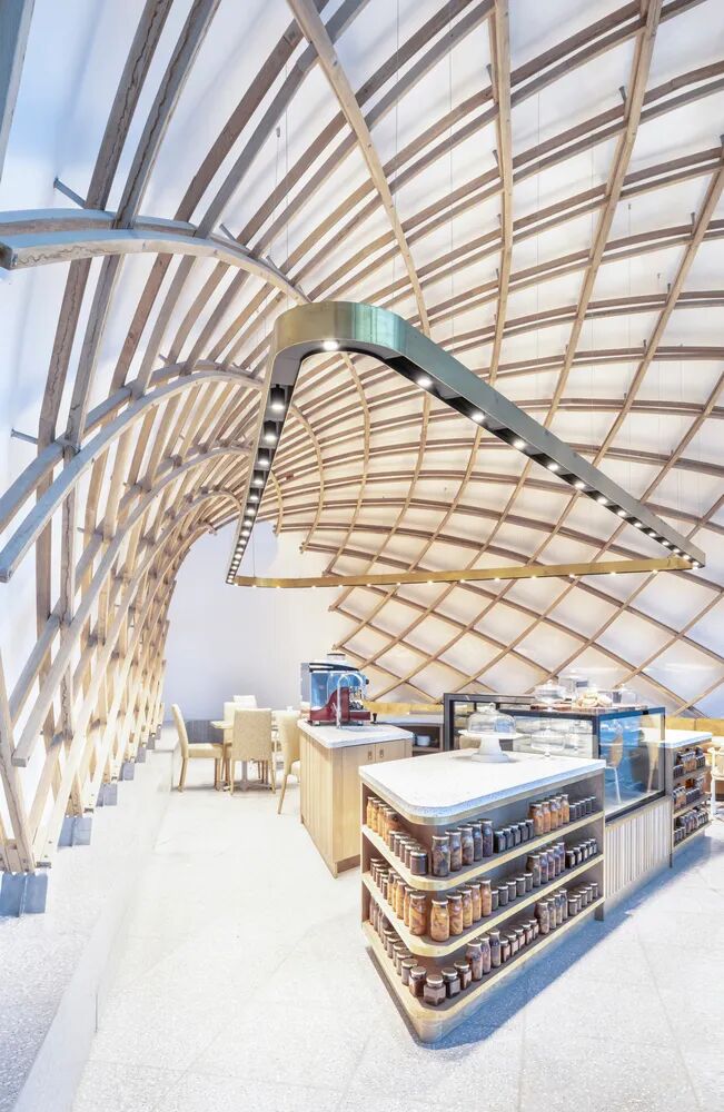 围合的空间让人在游览之余,加强人与自然相处的思考。咖啡馆的部分桌位设置在露天位置,当阳光洒进来,倍觉舒适惬意。