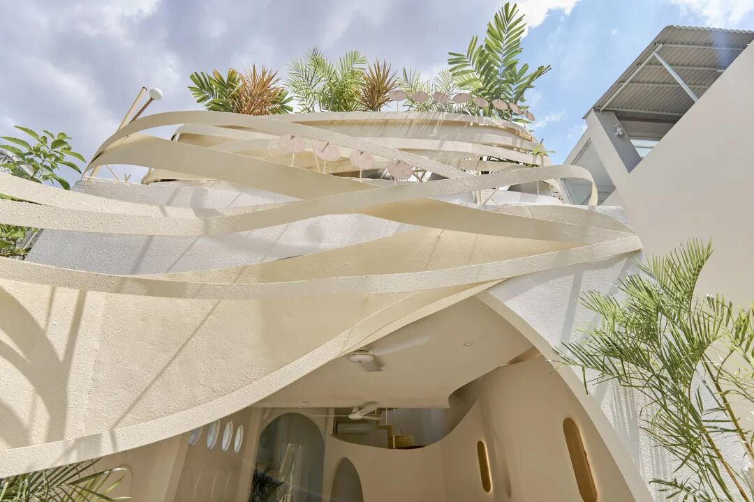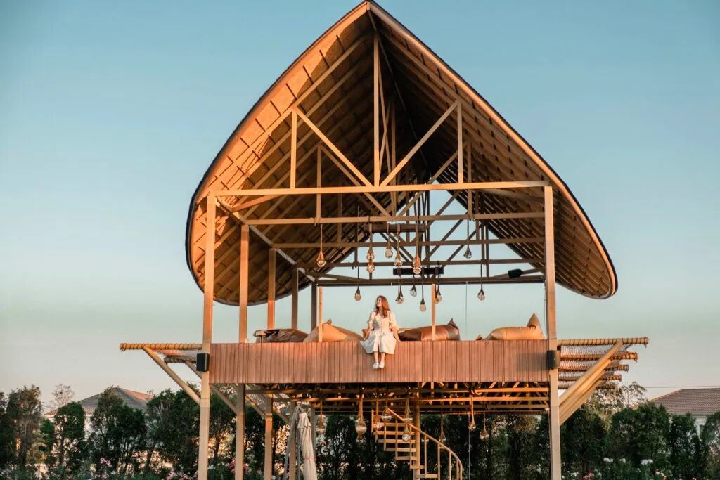 KontumIndochine Cafe 位于越南 KontumIndochine Hotel 酒店内,由 Vo Trong Nghia Architects设计。设计灵感来自越南传统捕鱼用的竹筐,屋顶采用茅草和增强纤维材料编制而成,光线可以很容易地穿透并洒入餐厅。