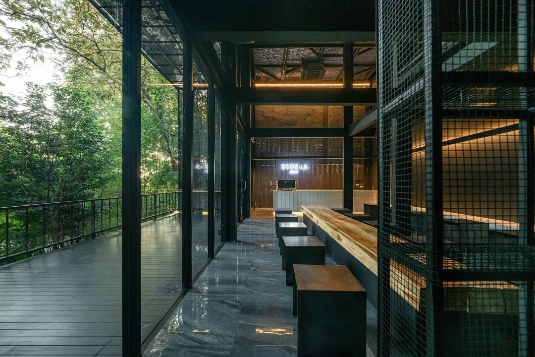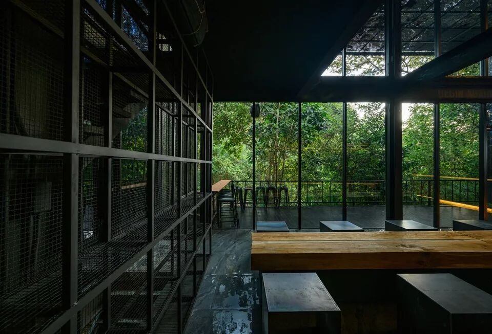 Yellow Submarine Coffee Tank 位于泰国考艾国家公园附近,以黑色为主色调的咖啡馆被茂密丛林围绕,塑造出神秘感却不与环境违和的高雅气息。