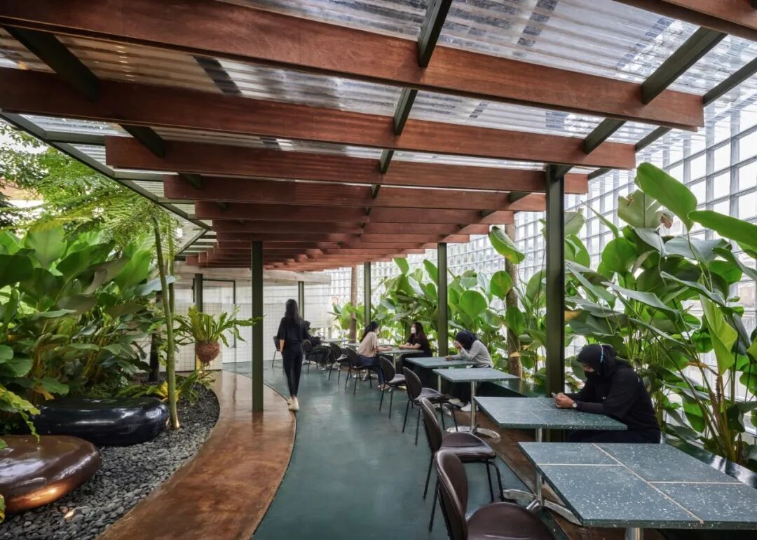 不得不说,咖啡从打工人的“续命水”到当代新潮生活方式的代言者之一,抛开它给人快节奏的都市生活印象,还承载着工作之余的社交行为。本篇整理了全球被丛林花园所包裹的咖啡馆设计,一起欣赏这些让时间慢下来的景观吧。