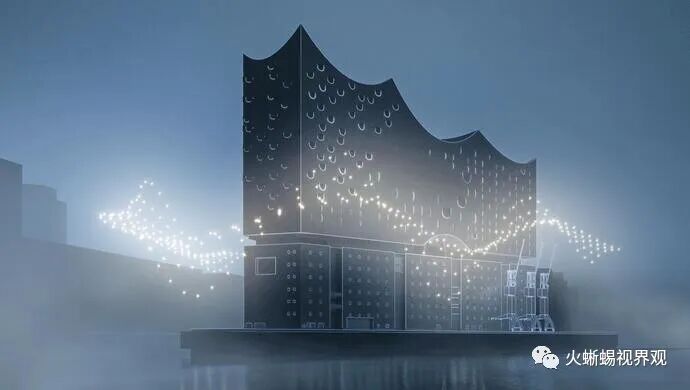 凭借着建筑自身的独特外观优势,这里也吸引了很多艺术家围绕这座建筑展开了很多艺术实践,比如荷兰艺术家组合drift创作的灯光秀“破浪”首演,数百架发光无人机围绕音乐厅翩翩起舞,庆祝这一汉堡文化地标开幕五周年。
