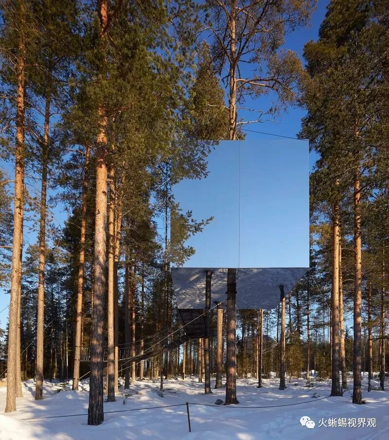Treehotel背后的想法是做一些与该地区其他豪华酒店略有不同的事情。这七间套房的建筑师都有不同的主题,他们想让客人有机会以一种非传统的方式接触大自然。进入由建筑师Tham+Videgård Arkitekter设计的玻璃盒子。这座被称为镜立方(Mirrorcube)的独特建筑几乎消失在自然环境中,可以通过一座与森林融为一体的索桥进入。