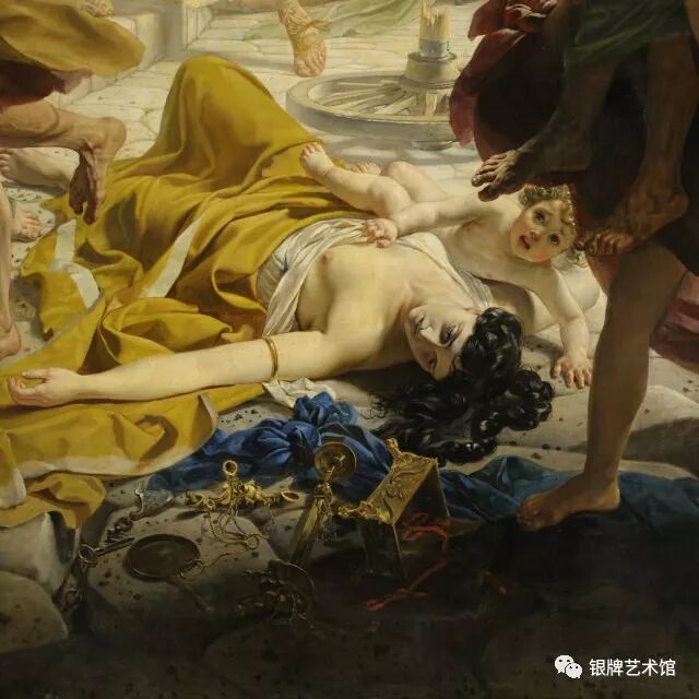 充满动势的构图、强烈的明暗对比、人物的痉挛的动作、以及他们惊恐的表情及绝望的表现——这一切都加强了画中的悲剧性的激情,面临灭顶之灾,被死亡威胁的人们虽然在惊恐之中,但他们仍没有忘记扶老携幼,互相救助。