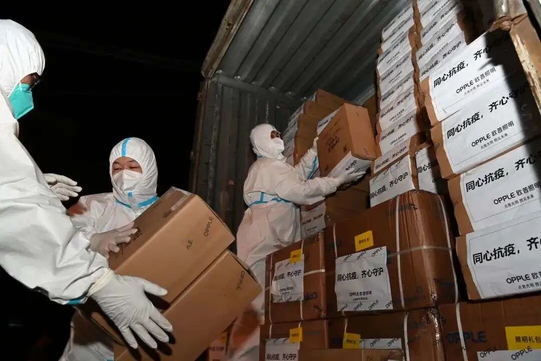 欧普照明向上海市静安区捐赠1.1万份食品、日化用品及照明产品,为静安区抗疫医务工作者、一线工作人员、环卫人员等超万人提供最亟需的生活物资,传达“光照暖人心”的温暖力量。