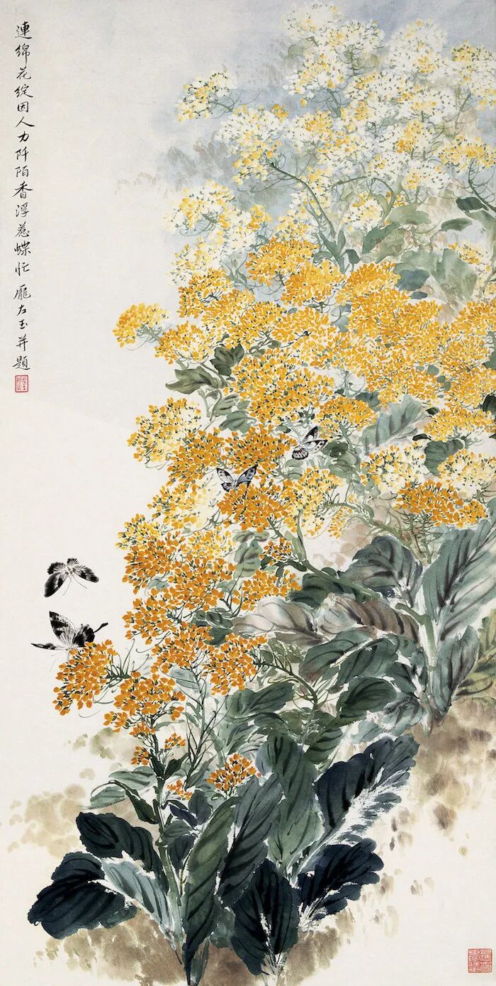 她的小写意花鸟画由学徐青藤、陈白阳入手,后充分吸收恽寿平、华嵒的设色与写生技法,重视色彩与笔墨的搭配,所作花卉草虫,笔致秀雅,色泽妍丽。较明清人更见爽利、矫健、果敢的用笔情调!