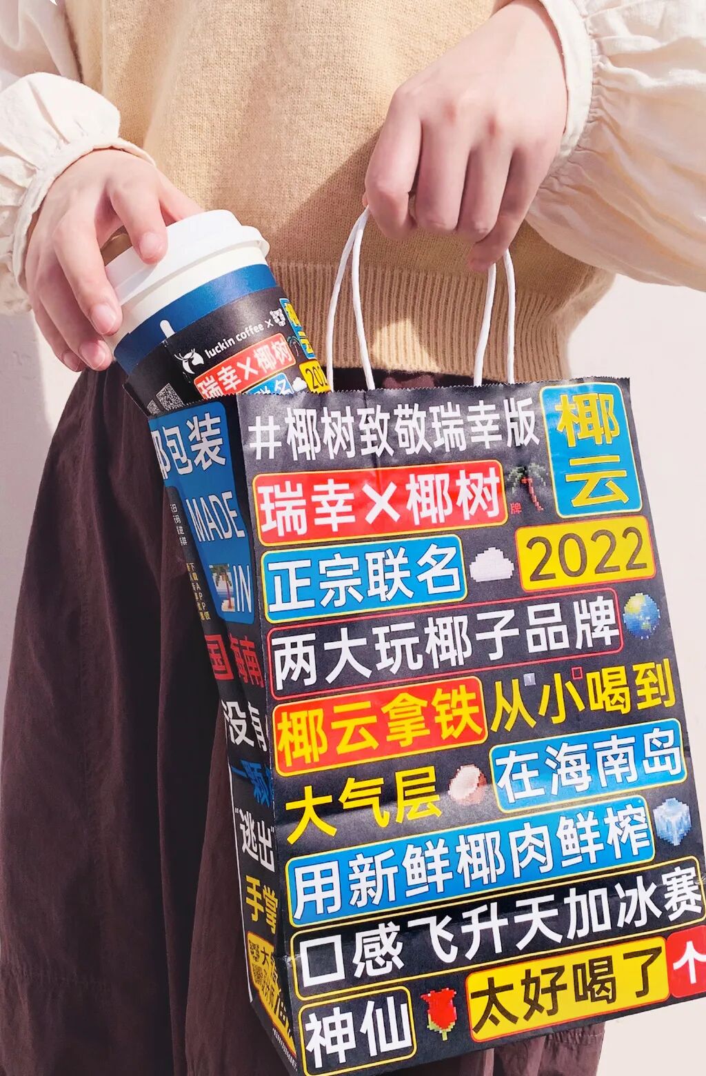 本次联名款,除了在原料上使用了椰树牌椰汁,杯套与包装袋也采用了椰树牌椰汁的经典设计风格。