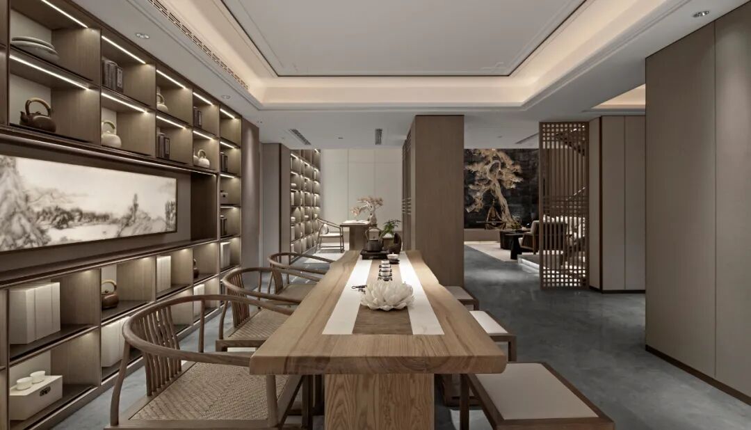 千年禅脉在潇湘青山中尽化为动人一瞬,空山回响,余音不绝。在设计师动人的笔触下,再现超然脱俗的东方美学意韵之境。