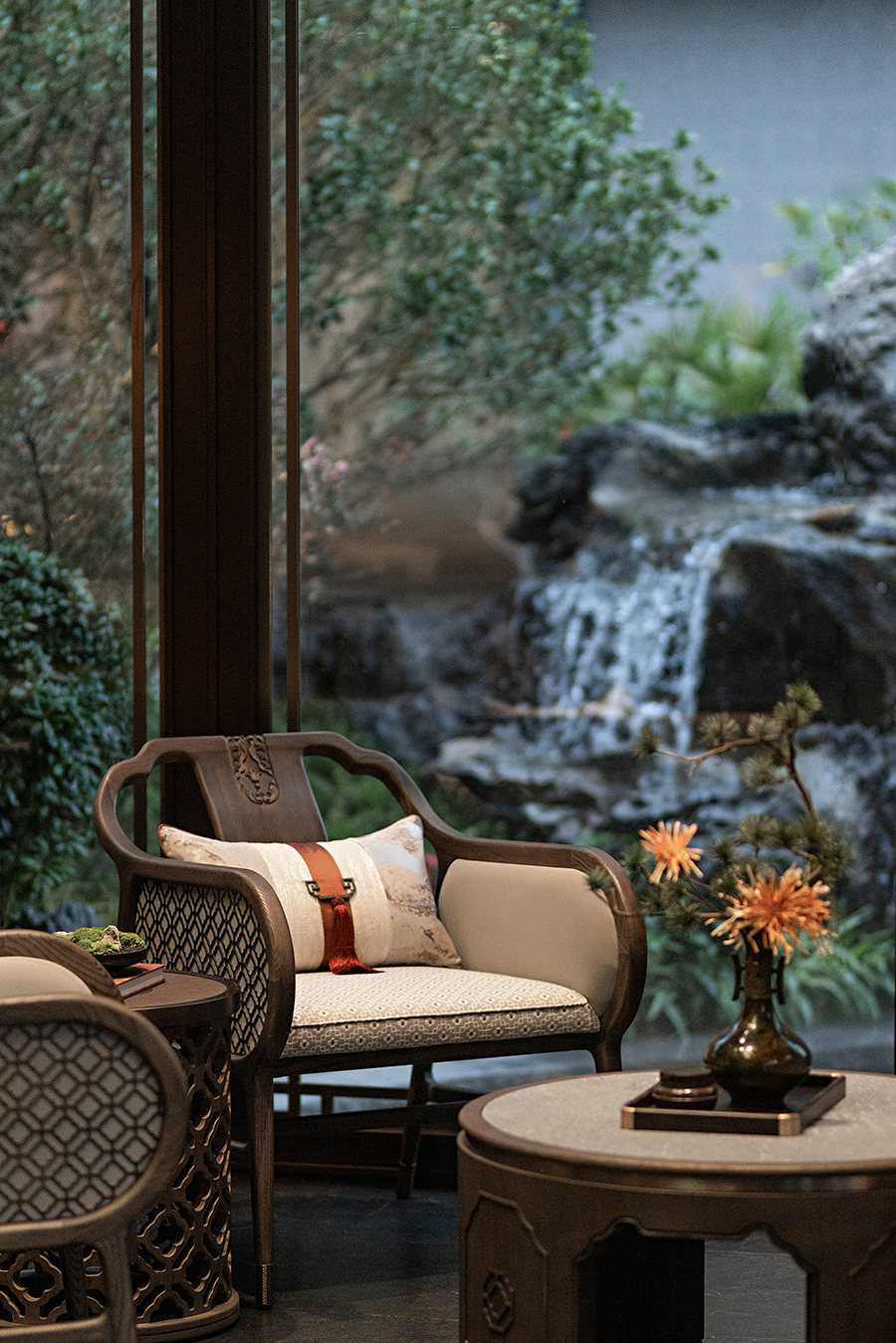 苒苒时光在这里停留驻足,凿窗引景,只余下自然的气息踱步其间,林樾忽风起,翠竹悬窗牖,有绿意盎然萦绕身侧,打破了空间与自然的边界后,周身皆沾染自然之气。