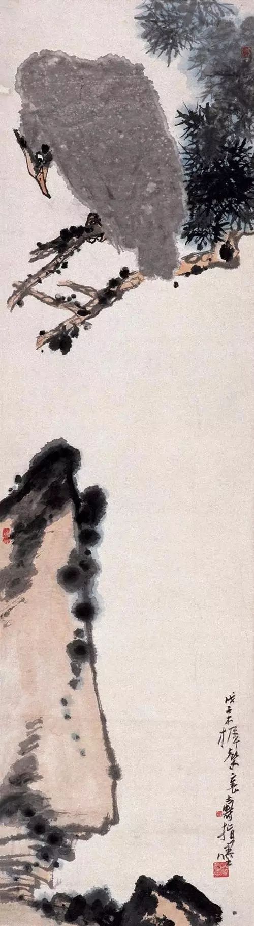 潘天寿 松鹰 1948年作 149×40.5cm 纸本水墨设色 中国美术馆藏