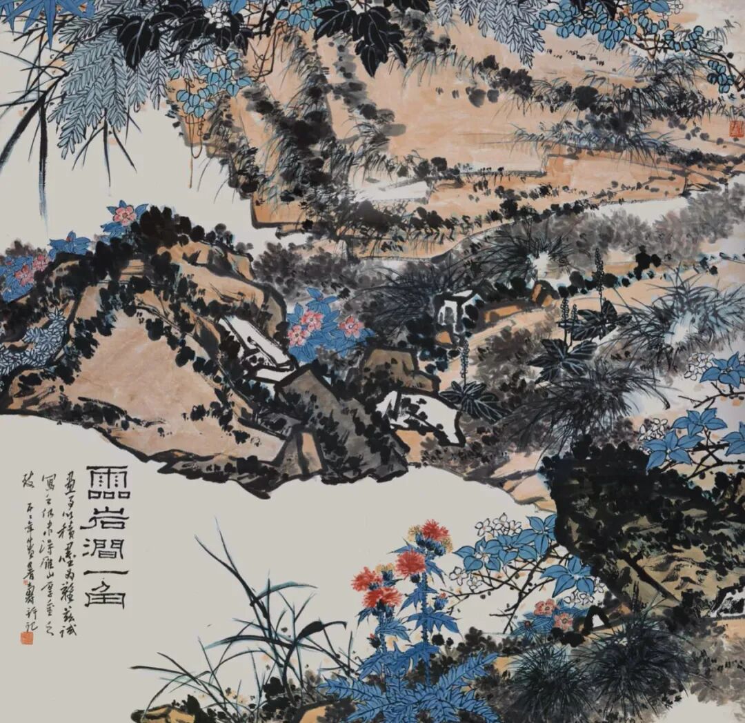 潘天寿  灵岩涧一角  116.7×119.7cm  纸本设色