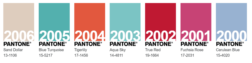 偏向柔和的色彩手法:Pantone公司首度选择两种色彩的组合作为代表色—2016年的年度代表色是宁静蓝与水晶粉。