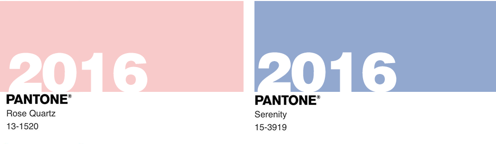 彩通2016年度代表色:13-1520 Rose Quartz (水晶粉) 与 15-3919 Serenity (宁静蓝)⇊