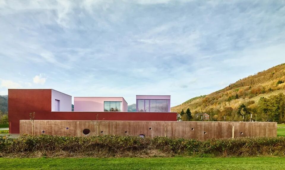 建筑位于一个山谷小村庄的入口处,起伏的Vosges山丘成为了幼儿园随四季变化的背景。沿着基地的边界有一圈围墙,如同城堡的高墙一般,守护着在游乐场上玩耍的孩子们。不同功能的空间组合在一起,最终形成了矩形的平面,建筑内部层次丰富。