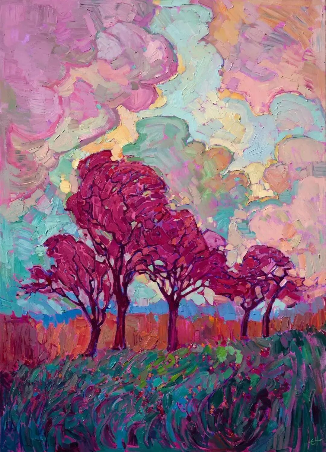 Erin Hanson, Magenta Oaks Painting, 2016