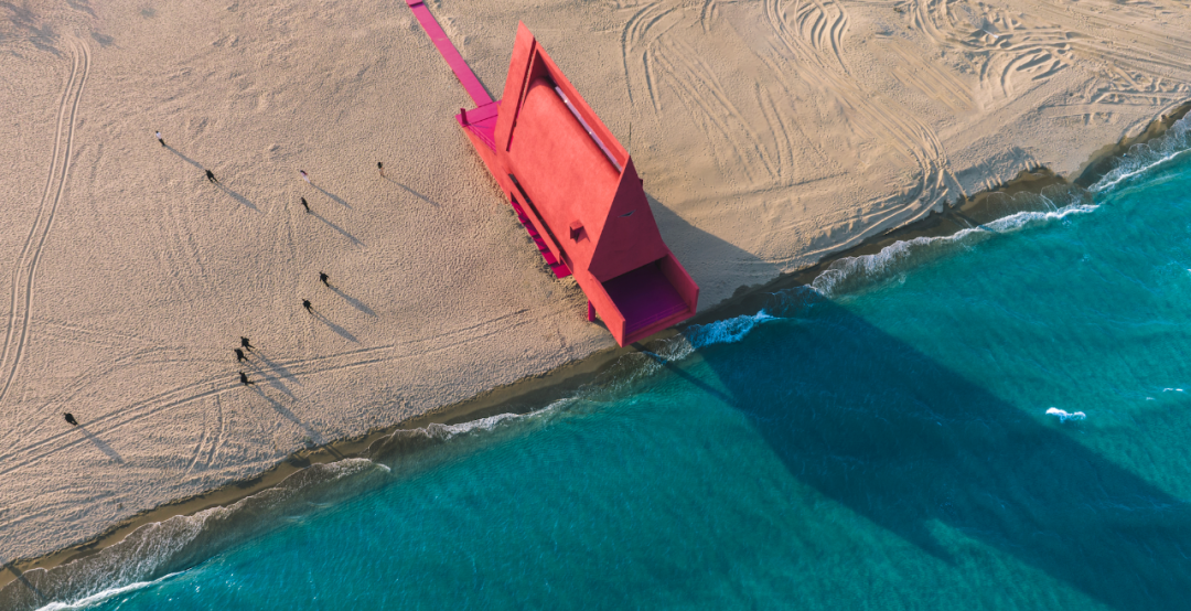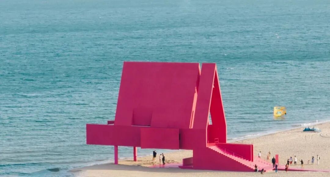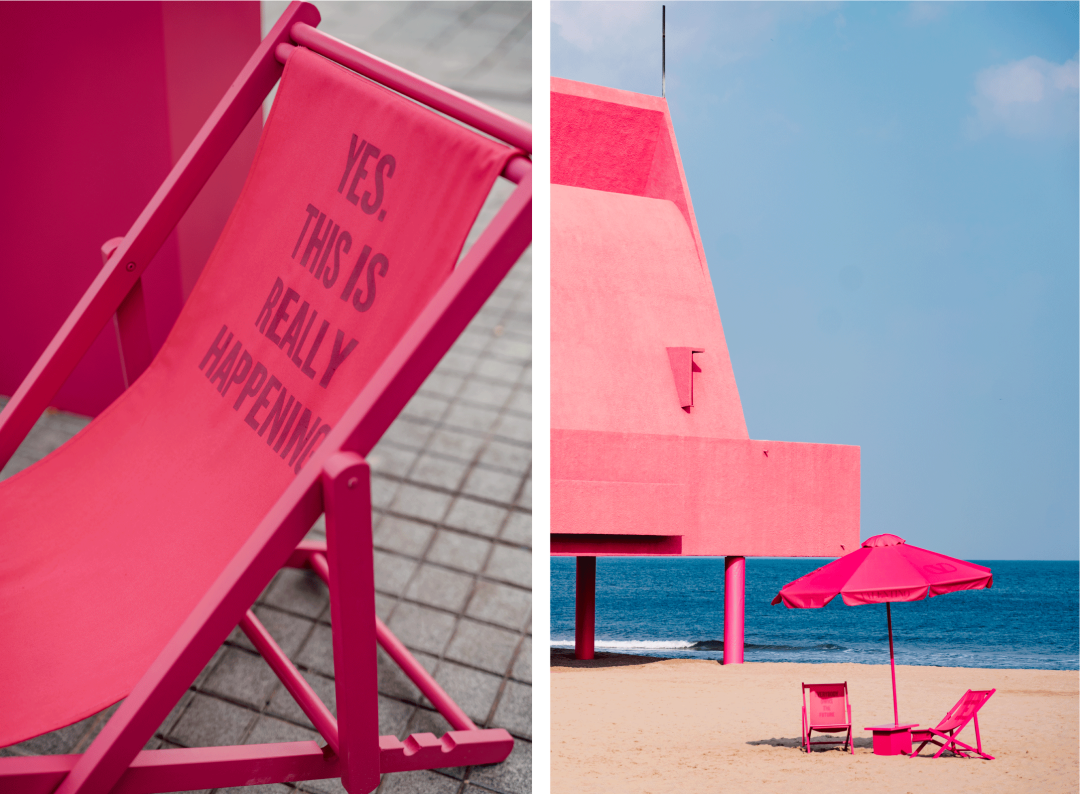 Valentino更是将阿那亚标志性的纯白建筑通体染上Pink PP,抓人眼球,建筑也成为这一轮颜色营销攻势的主力军。洁净海岸上的粉色礼堂,仿佛异世而来,突破了人们以往对阿那亚的“纯洁”印象,也打破了对建筑色彩选择的禁锢。