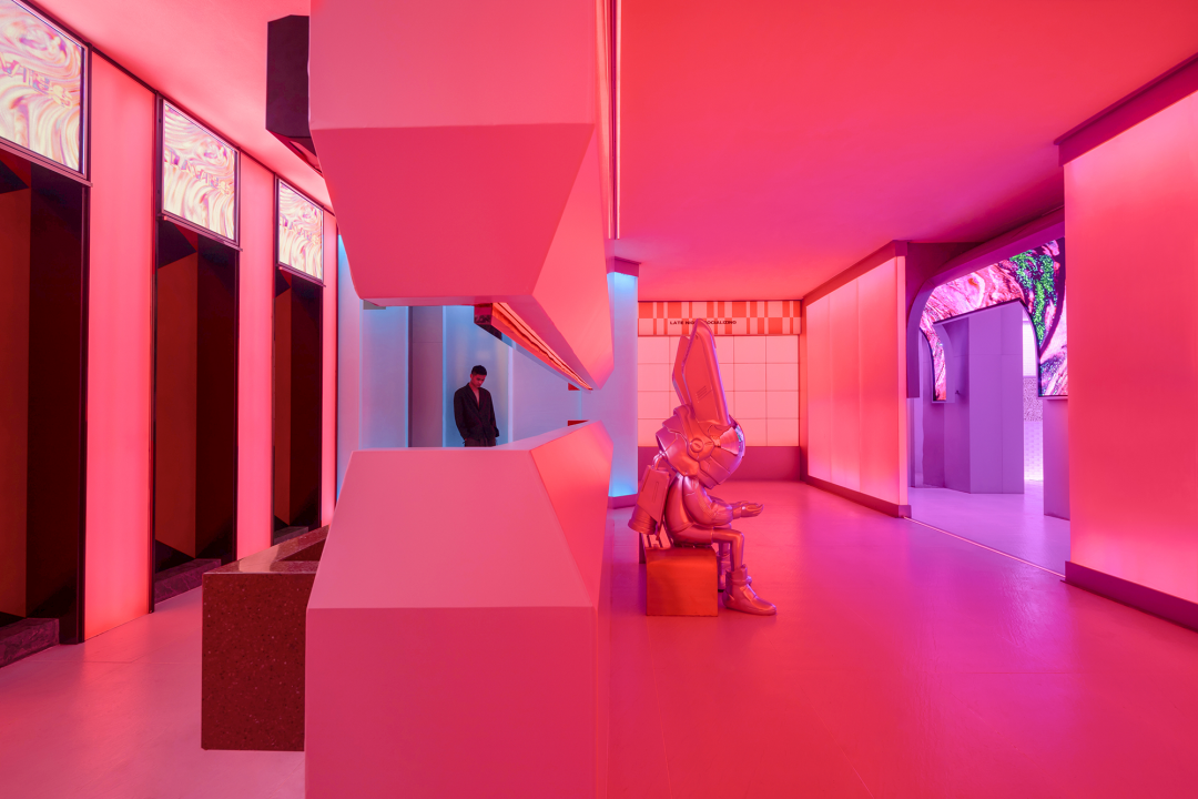 2022年米兰设计周,洋红色镜像空间沉浸式装置“Fractal ”