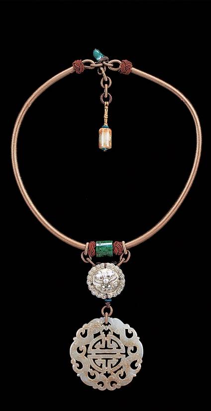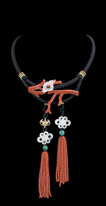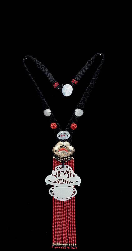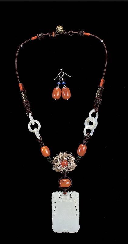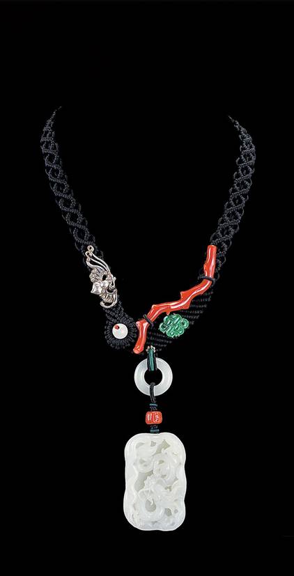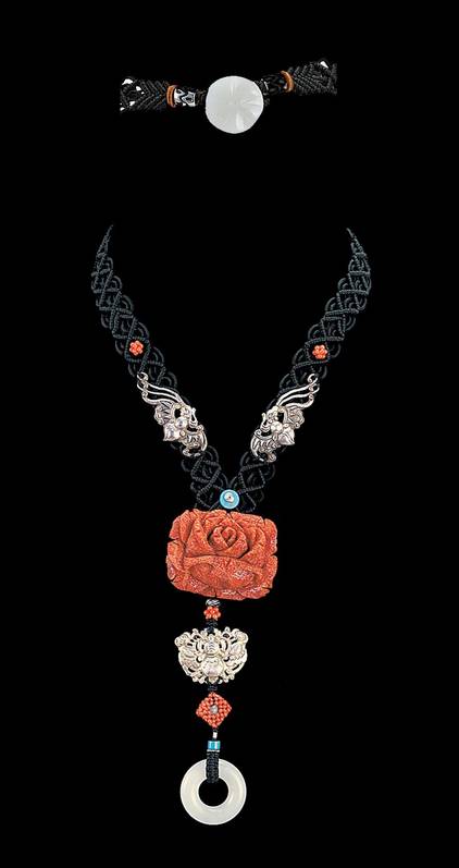 玛瑙连年有余配双喜翡翠珊瑚项饰