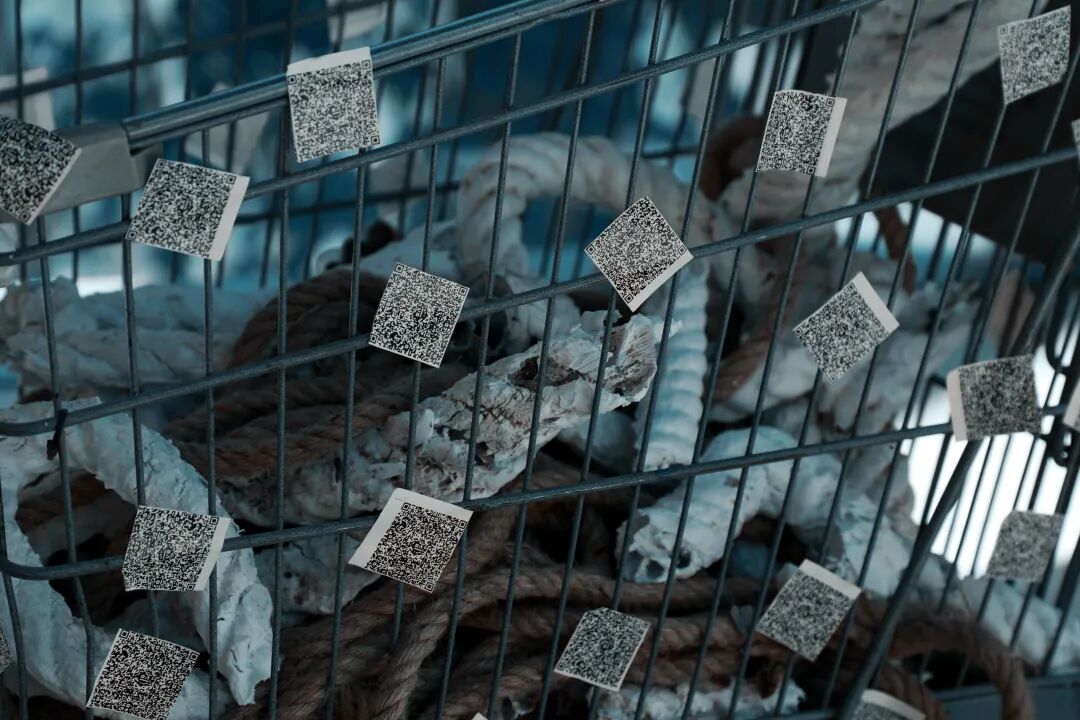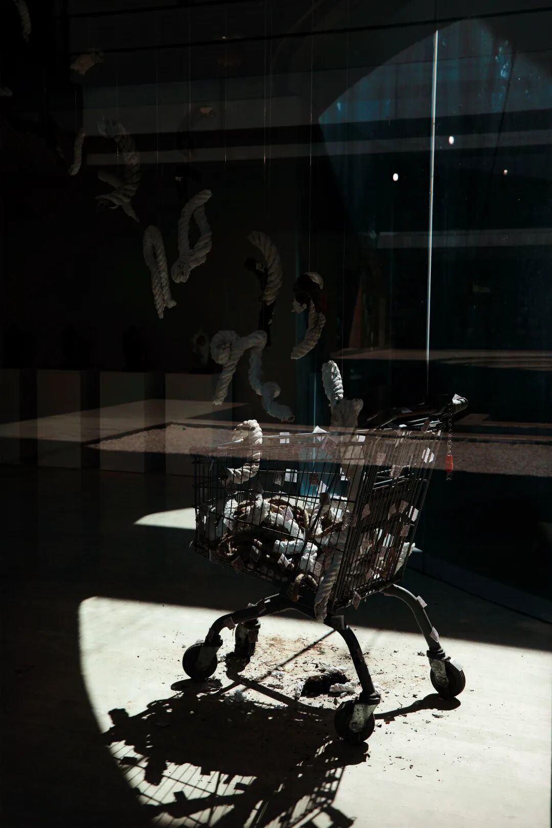 像是一场正义的审判,脆弱的瓷质绳索从顶上垂落,高低错落着随着室内人流的呼吸而微微摆动。这一空间内所有的思想都变得透明,艺术家个人的表达也许不是最重要的,着或许是束缚生灵的绳索,或许是搭建家园的绳索,或许是逃生救命的绳索,都共大家遐想猜测。