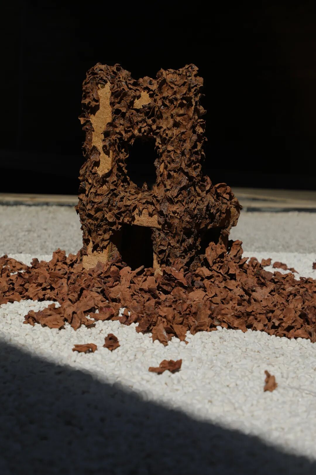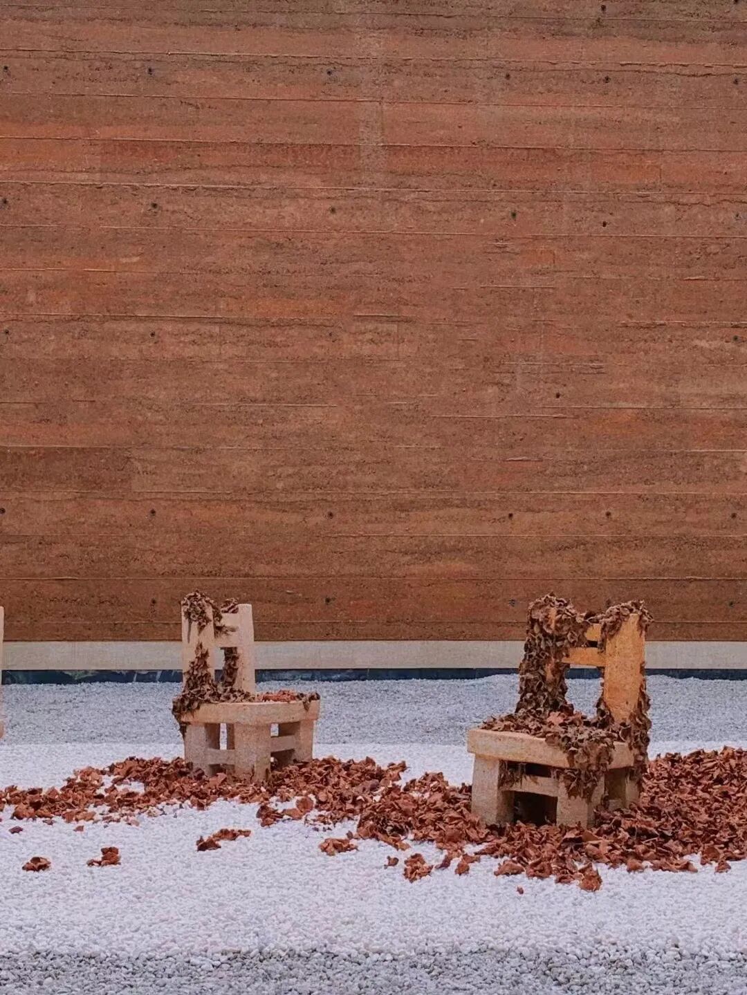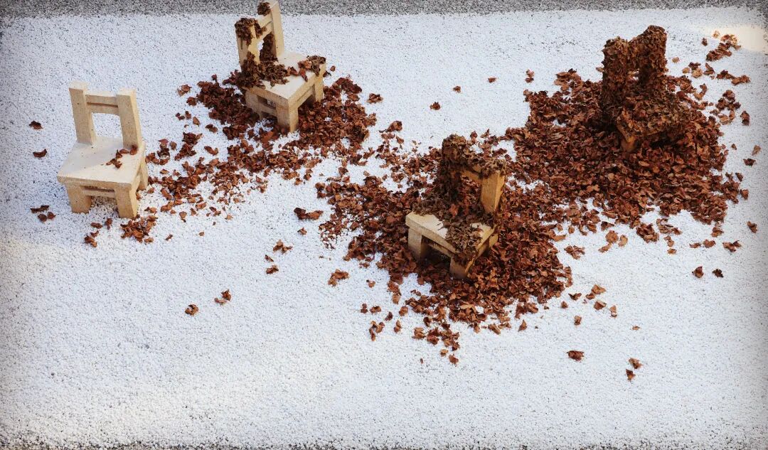 :《空位》 通过“空着”让人更强烈地想起某一天曾坐过离开的存在,从这一点,成为了通过“不存在”证明“存在”的素材。另外,被落叶覆盖的椅子象征性地展现了长时间的不存在。我们都经历了新型冠状病毒带来的大流行时期,丧失过以为是理所当然的日常生活,在其中,我们不得不深刻感受到平凡的一天和日常生活是多么珍贵。这些经历让我对“仍未恢复的日常生活”进行了思考,这些想法和情绪通过“空椅子”和堆积在椅子上的“落叶”的形象表现了出来。但《空位》作品并不只是传达“不存在”。“空椅子”是有人坐过离开的位子,同时也是空着的,所以也是其他人可以来坐的位子,“落叶”是我创作世界中强烈象征“循环”的素材,从这一点来看,也暗示了即将到来的希望和崭新的明天。同时,我抛开我的创作意图,希望通过这部作品具有的诗意的风景,让观赏者们把各自的故事放在椅子上。