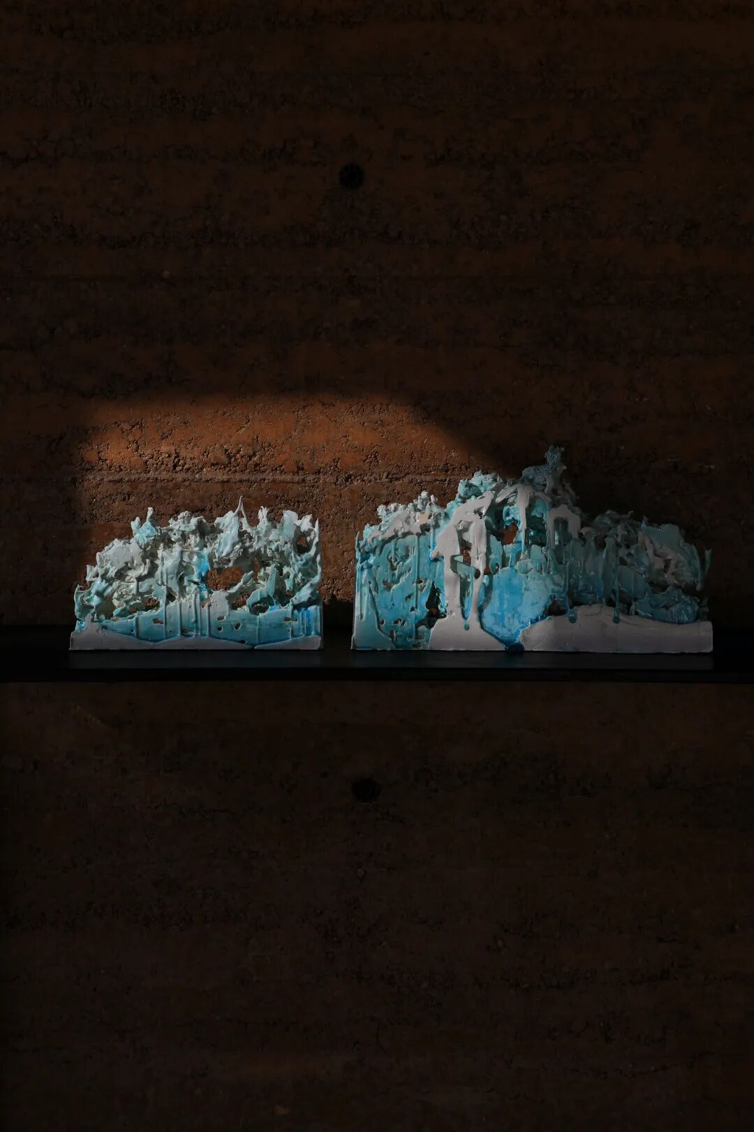从《博山》到《春山欲雨》的转变是想从立体到平面上去表现,可这两者都没有逃脱出框架的束缚,所以在之后的延续中我使用了切割下的泥板,而在周围舍弃了边框。反而这种自由流淌,控制少一点的感觉会显得更加的自由。