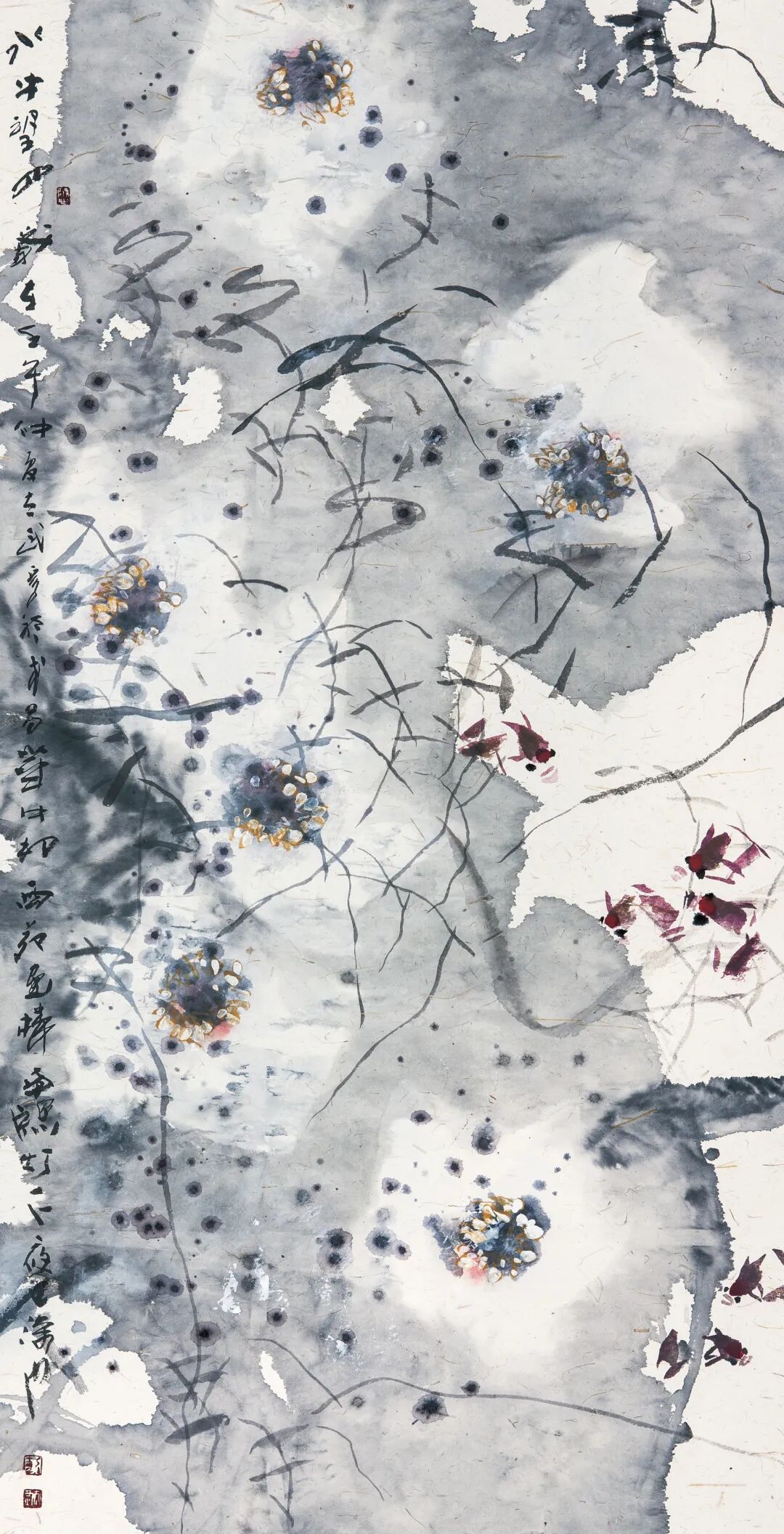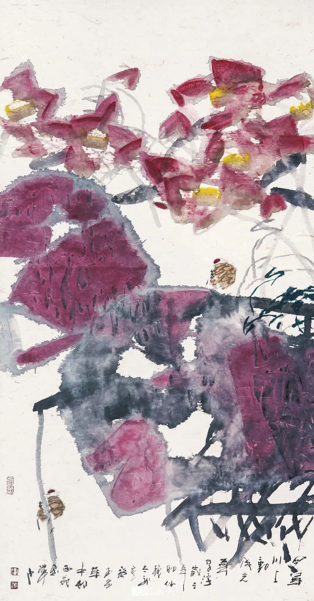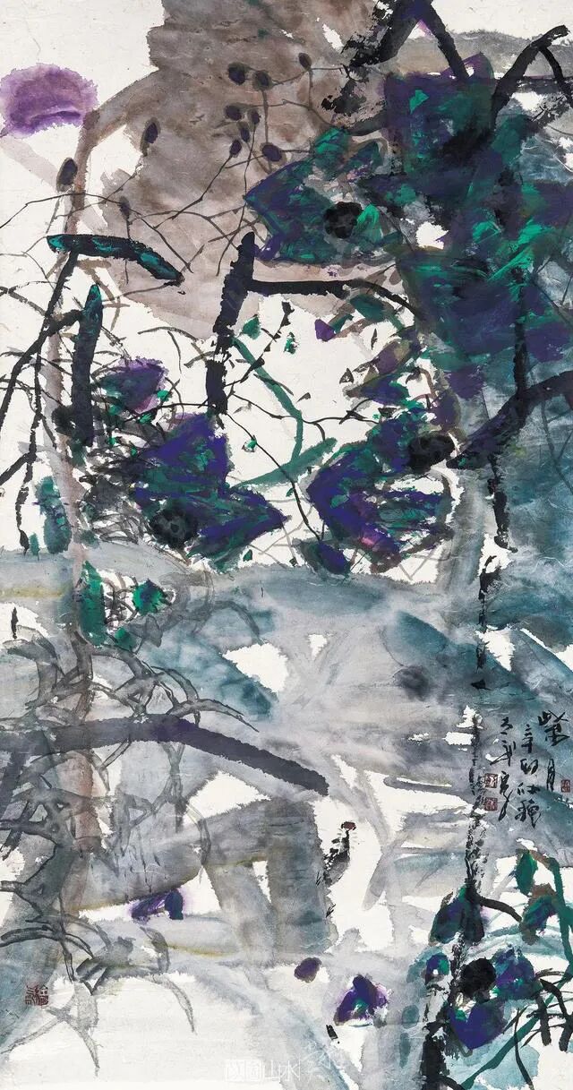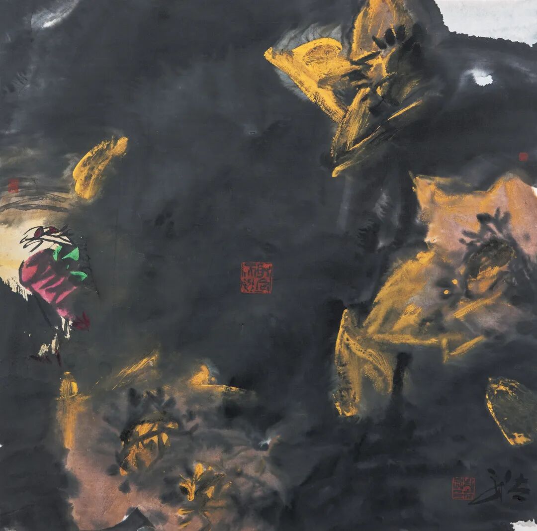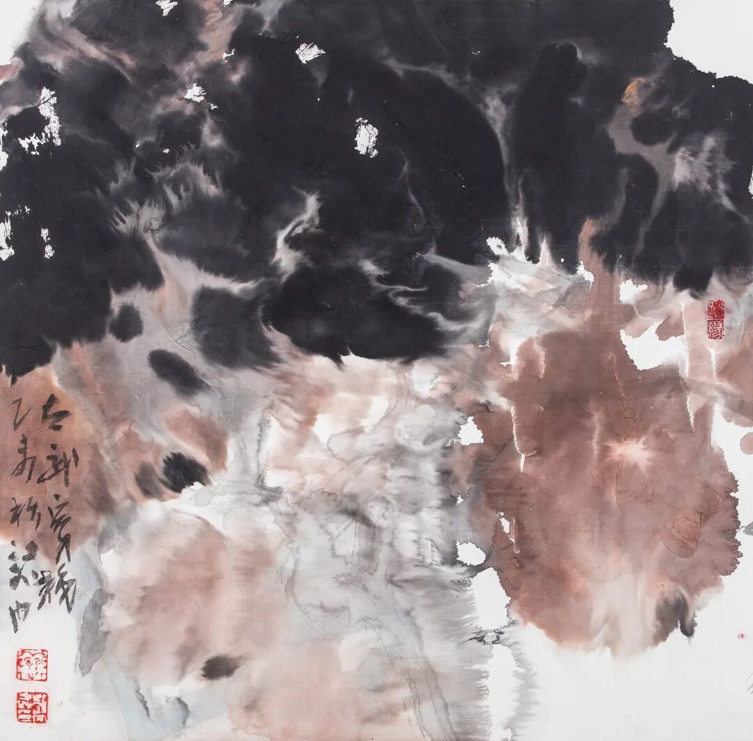 彭太武画作,浑然气象之上,又有妙不可言之天成!绘事如谋事,谋事在人,成事在天,画面中无意与有意的结合,偶然与必然的发生,失控与可控的调和,给人浑然天成又奇妙绝伦,有如彩色斑斓之窑变。这种泼墨泼彩之后的天然晕变,经过沉淀、勾染、浸润,经过精心挑选,然后进行精湛的再创作。