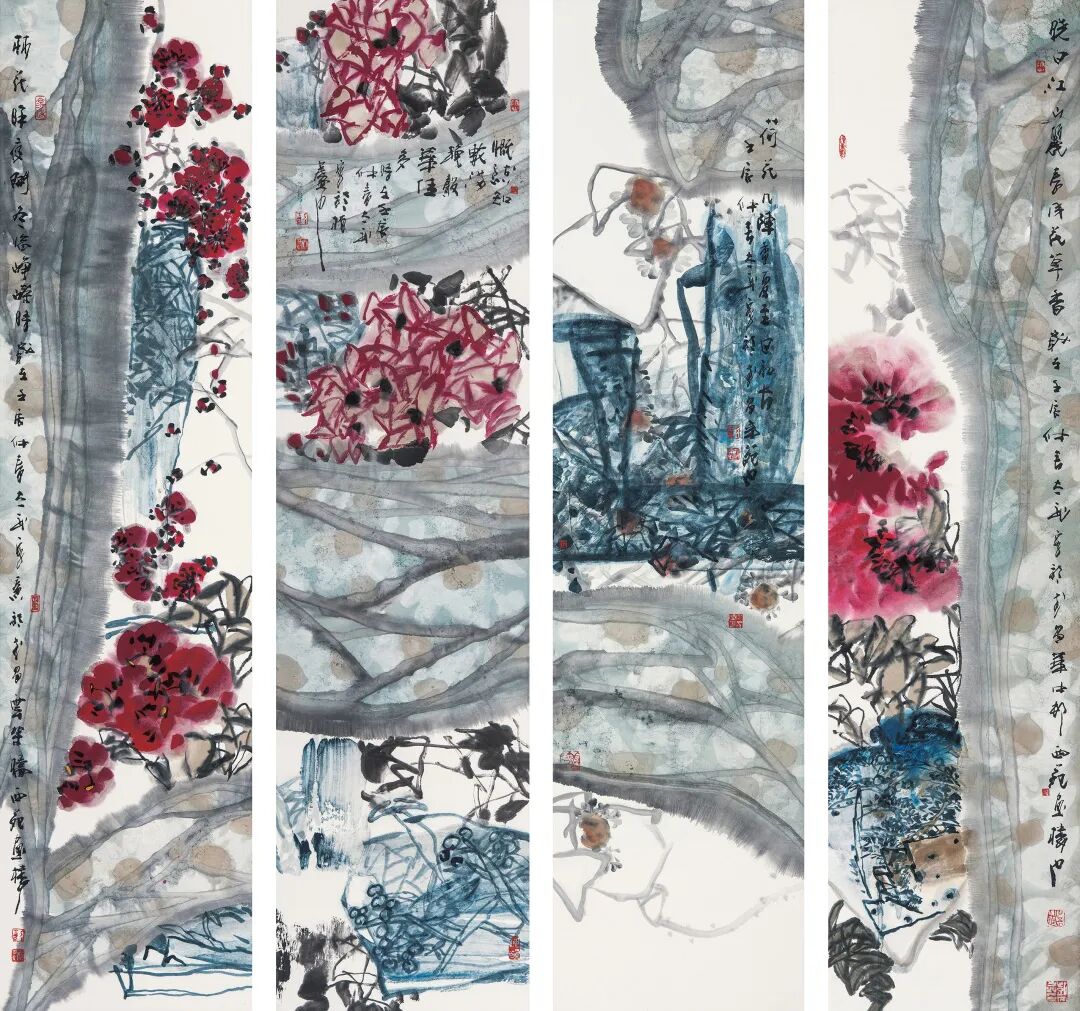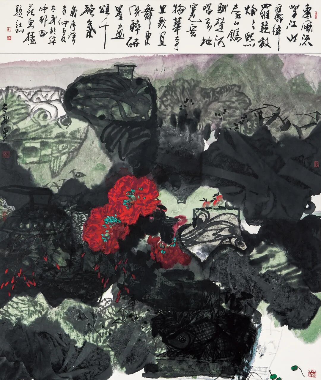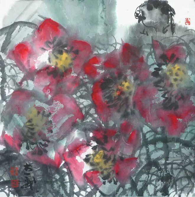 很多人不在意“法古思变”、也不重视“创新有典”。但彭太武不只是能突破千人一面的程式化陋习,而且他能在创新中重视熔铸经典元素,在构图上执着于新奇,尤其着力于有秩序的美,笔端通造化,意笔有神韵,能于虚实有无中追求水墨色彩的变化,洋洋洒洒,磊磊落落,无小家碧玉之气,更有“红雨落清江,杨柳撒梨花”的飘逸之美。可谓天机所到皆意趣,心有灵犀一点通,富有浪漫主义情怀。