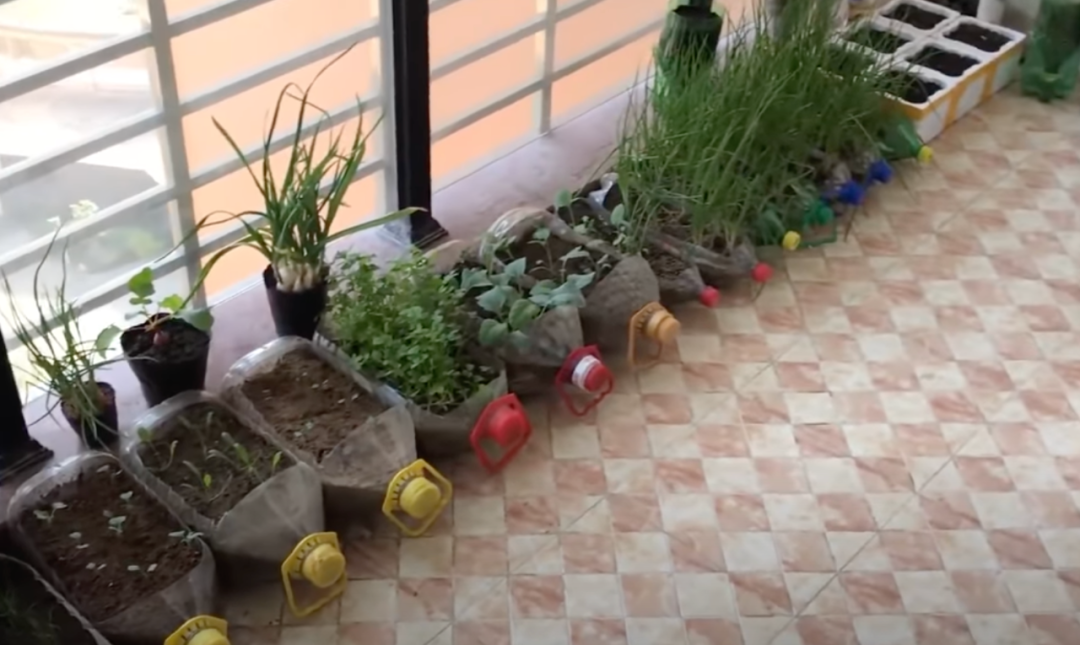 在自家厨房,将炒菜剩下的蔬菜余料重新种植,为明天的餐桌提供补给。
