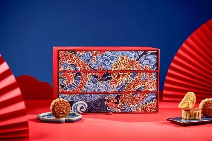 万达酒店集团及度假村则携手故宫博物院授权同意成立的御茶膳房,定制国风中秋月饼。礼盒外观以国月桂花、腾龙祥云、花鸟神兽、吉祥仙鹤寓意美好的精美中式元素,将中式节日的浪浸与诗意集一盒之上。