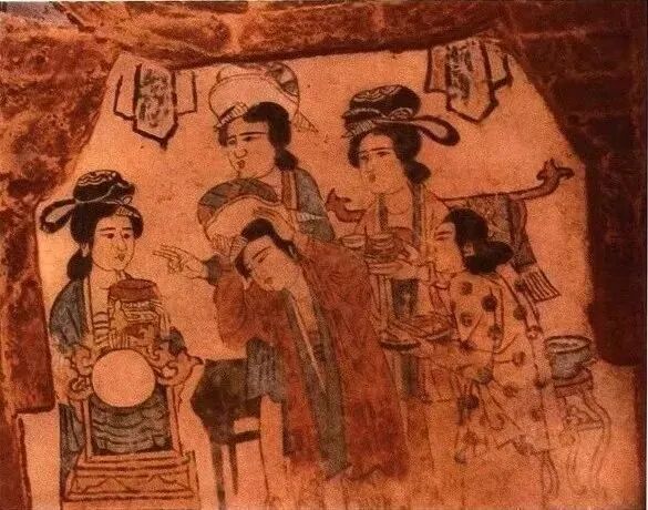 关于盆架的形象资料,宋代以前还未见到,从宋代开始,后世屡有发现。如:河南禹县宋墓壁画《梳妆图》中的盆架,为蓬牙三弯式腿,腿间有横枨连接。