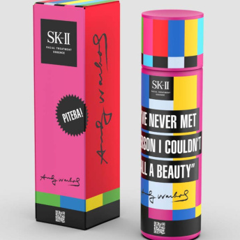 在与安迪·沃霍尔基金会的联名合作中,SK-ll 的包装从沃霍尔标志性的电视测试图案中获得灵感,设计了具有 VHS 磁带和电视屏幕特色的礼品套装盒,呈现了独具一格的视觉效果。