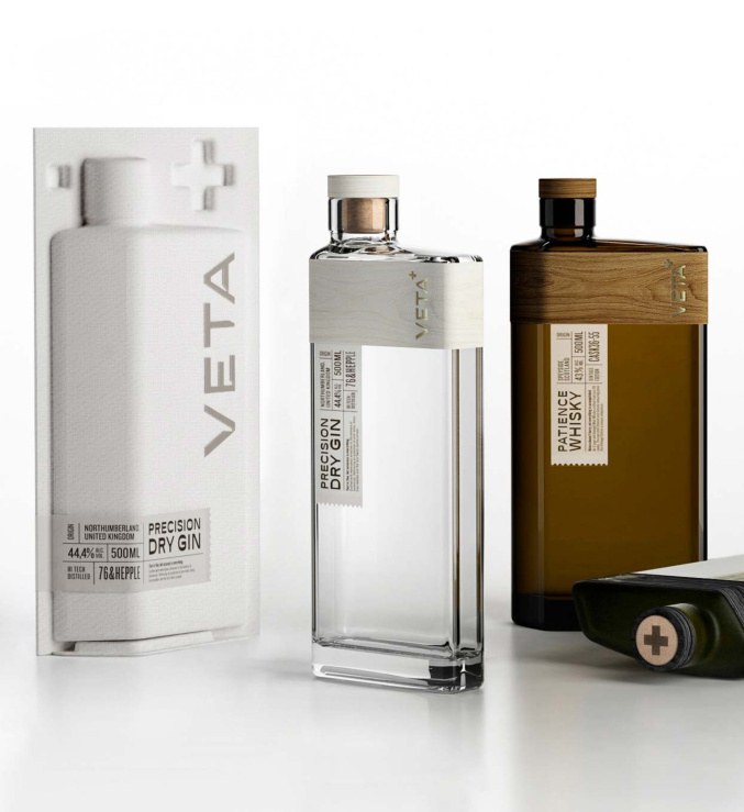 Meanwhile, the geometry of the bottle shape for VETA’s spirits was designed to refect the shape of a fask but the key feature is its sustainable moulded pulp pack which protects the product in an attractive way while minimising packaging.