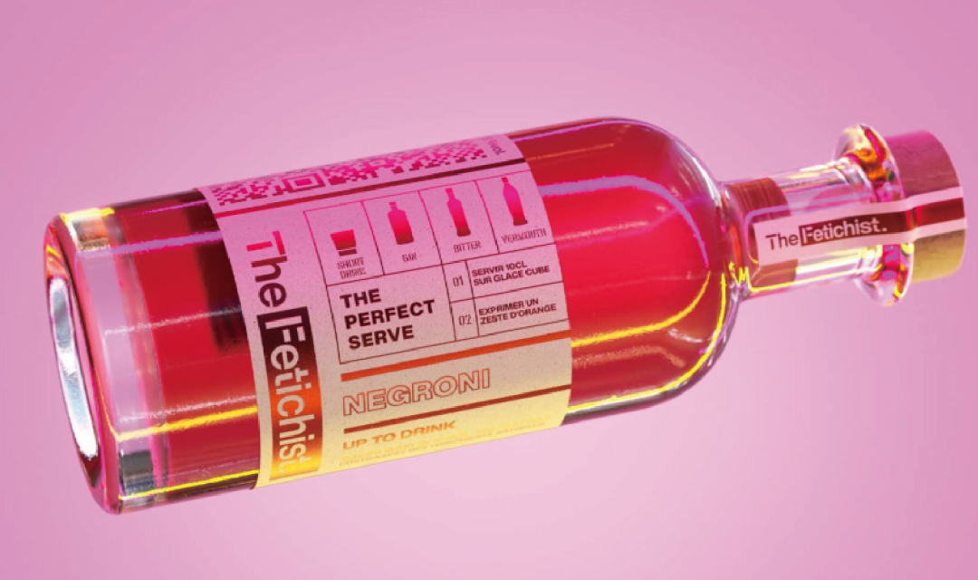 For The Fetichist’s packaging design, a radical graphic universe was created to refect the intricasies of the ready-to-drink cocktails developed by mixologist Ugo Jobin. The bold, digital neon design carries over to its video game-like website, where consumers can discover more and purchase cocktails online.