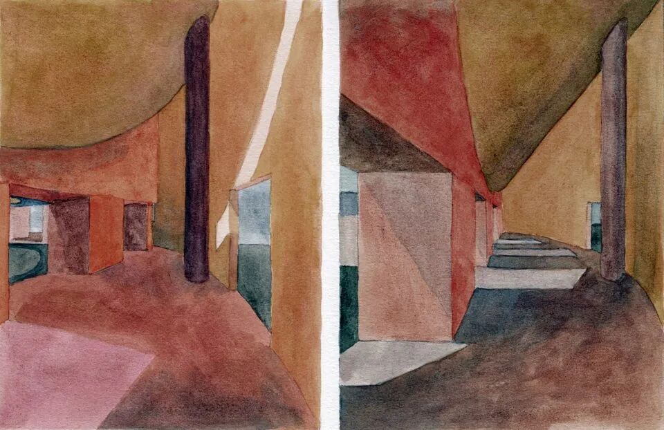这种处理方式意味着他们对空间进行大量的探讨,不断提出和否定,二维形式的图画成为他们最好的工具,然而他们清楚明白,二维的图画与三维的建筑空间是完全不同的,画纸上存在色块与留白,而真实空间中空白并不存在,每个角落都有光线阴翳,白云天空的存在和映射。