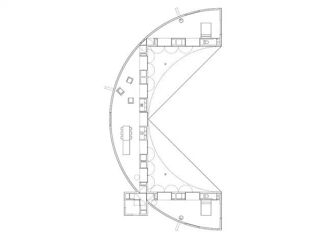 他们称其为“可居住的墙壁”,即一堵极厚的墙(或者说平行的两堵墙之间),容纳绝大部分功能空间,将卧室,餐厅厨房等起居空间作为主体进行组织,创造出更加纯粹的体验空间,让居住者清晰的感受到各空间的性格与联系。
